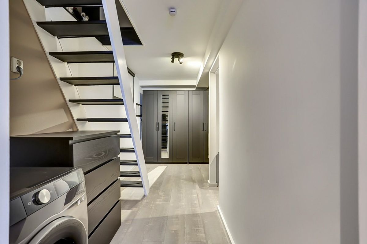 In het souterrain bevindt zich een ruime en knusse slaapkamer aan de tuinzijde, voorzien van airconditioning en met directe toegang tot de tuin. Daarnaast is er een gang en een praktische bergruimte met opstelplaats voor de droger. Deze verdieping biedt flexibele mogelijkheden, zoals het realiseren van een tweede slaapkamer, een werkruimte of hobbykamer.