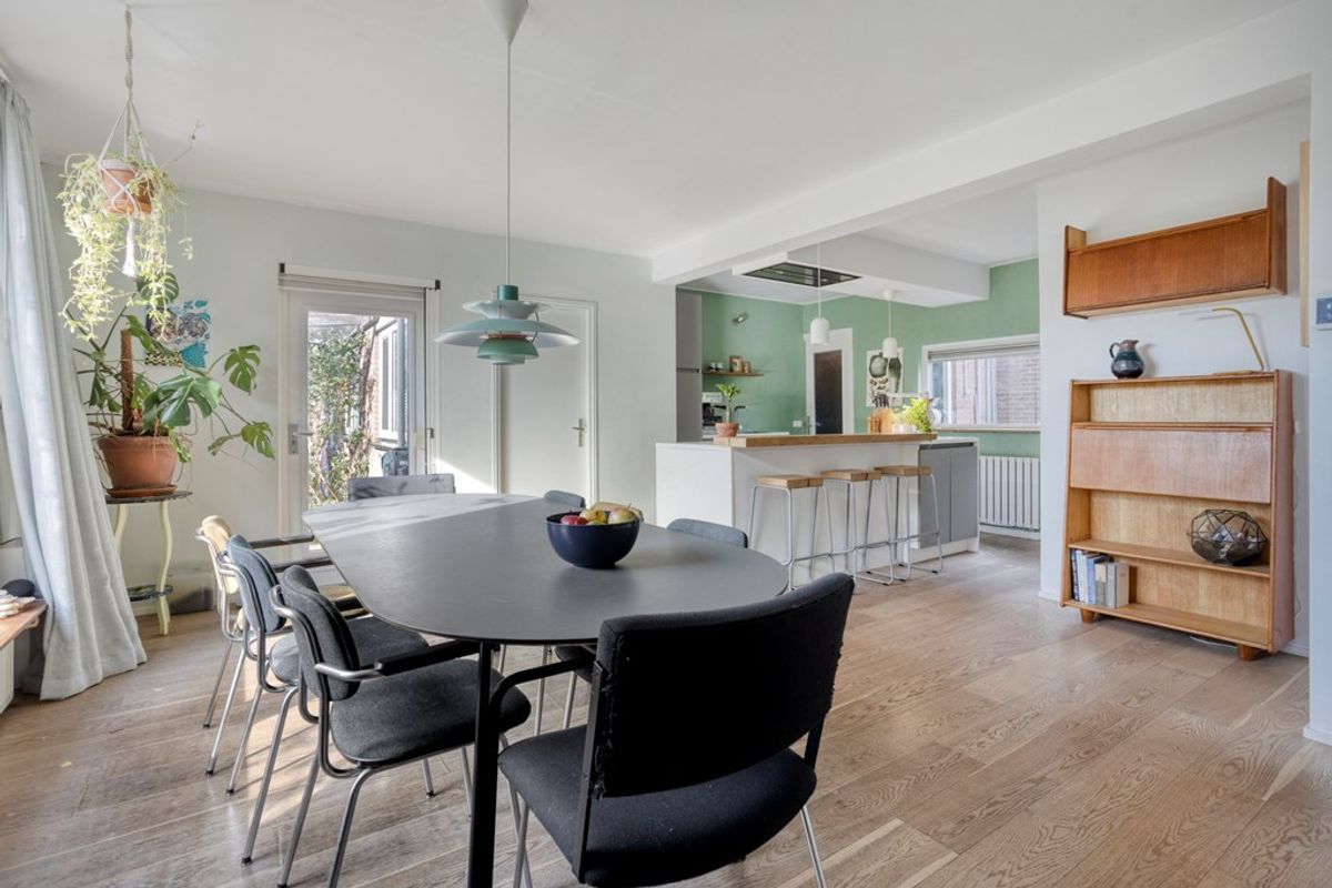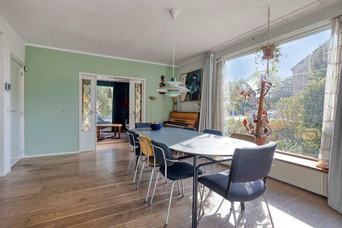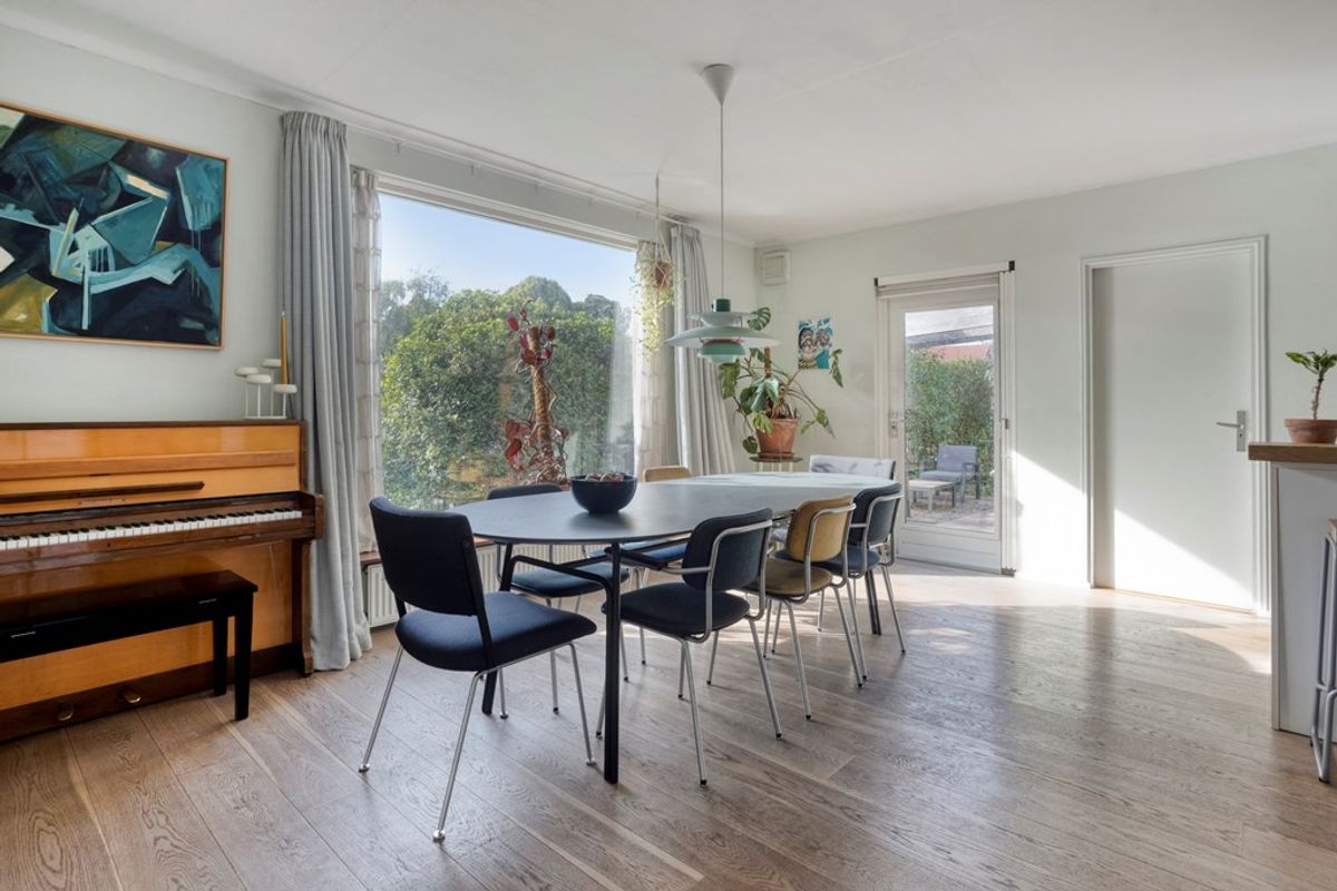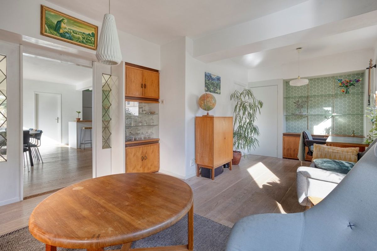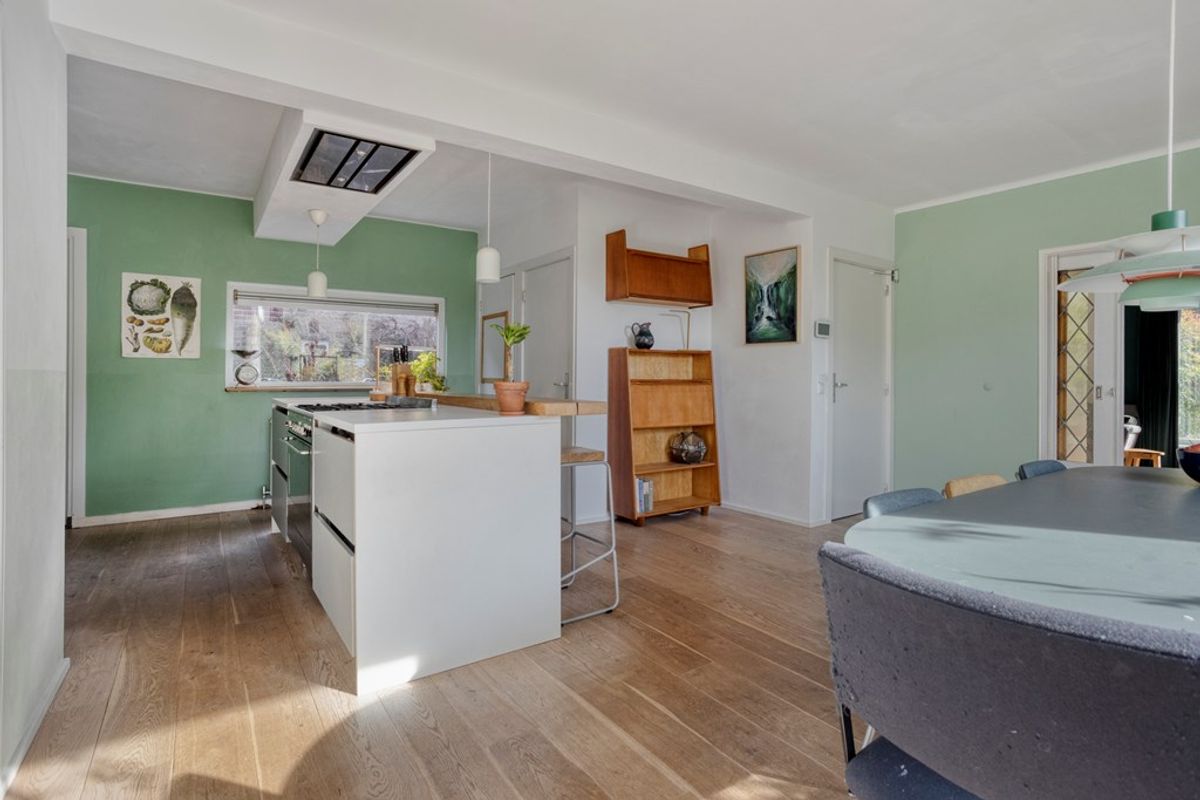 Deze onder architectuur gebouwde sfeervolle MID-CENTURY woning is het afgelopen decennium met waardering voor haar geschiedenis grotendeels gerenoveerd. De open keuken met deels vloerverwarming heeft een groot KOOKEILAND met unieke eiken bar en bijpassende barkrukken van Studio TOIMII (eventueel ter overname).