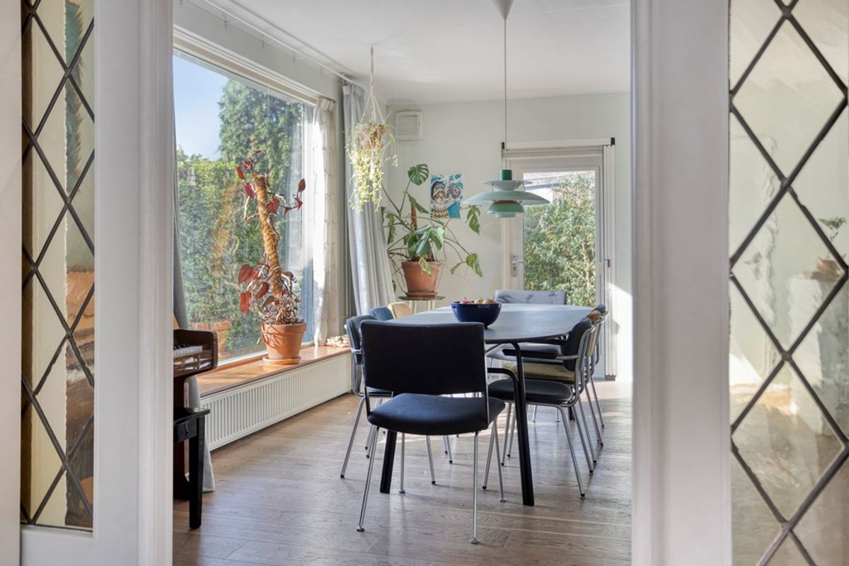 In de aangrenzend royale EETKAMER ontvang je gasten rond de tafel allen met zicht naar buiten. De aangebouwde WERK/HOBBY-kamer biedt in combinatie met de BIJKEUKEN ook uniek veel nuttige binnenruimte. De veelgebruikte trampoline in de voortuin past fijn buiten zicht van de ZITKAMER. Daarnaast bevindt zich nog een MEDIA/SPEELHOEK voor ieders ontspanning. Deze laatste ruimtes zijn ook te scheiden van de eetkamer middels authentieke SCHUIFDEUREN met glas in lood.