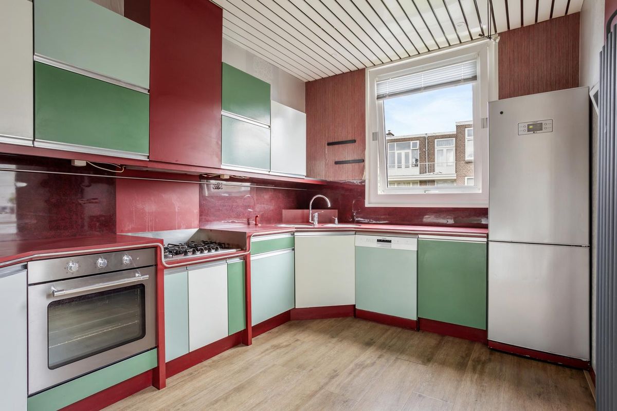 De ruime keuken in hoekopstelling bevindt zich eveneens op deze verdieping en biedt volop mogelijkheden om geheel naar eigen wens te moderniseren.