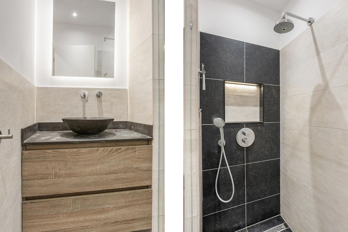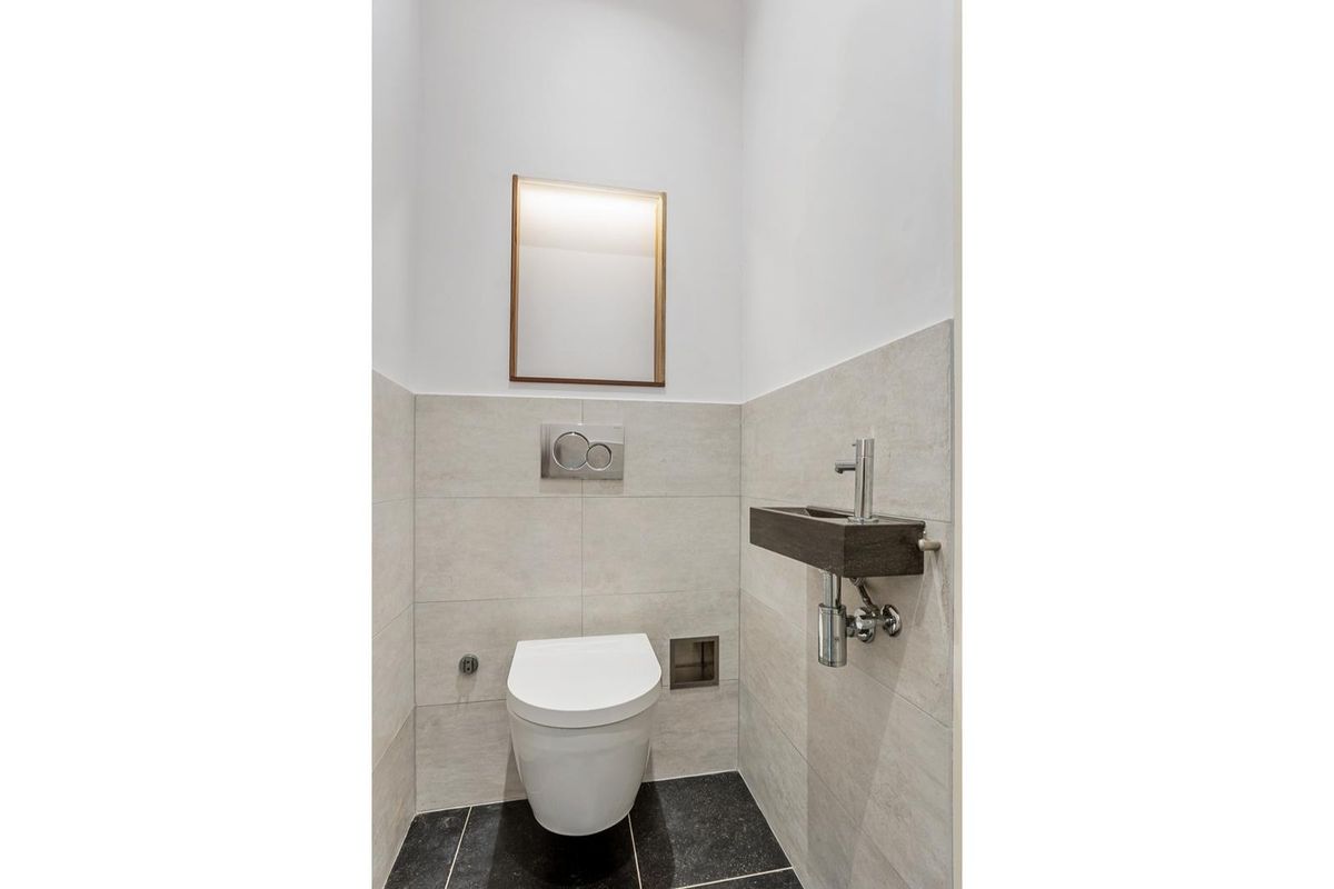 Via eigen voordeur op straatniveau betreedt u het trappenhuis de eerste verdieping. Toilet en fonteintje en toegang tot de moderne badkamer met inloopdouche en wastafelmeubel. Ook vindt u hier de eerste slaapkamer, gelegen aan de voorzijde.