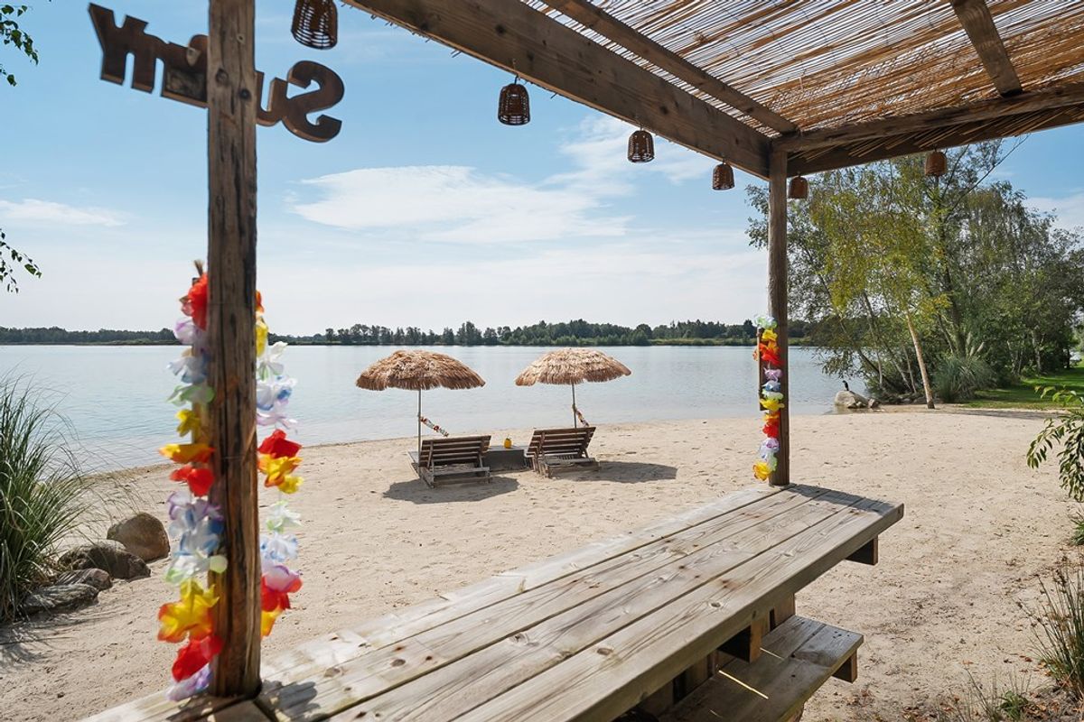 * Eigen water (deel van de achterliggende waterplas) over de volle breedte van het perceel, met