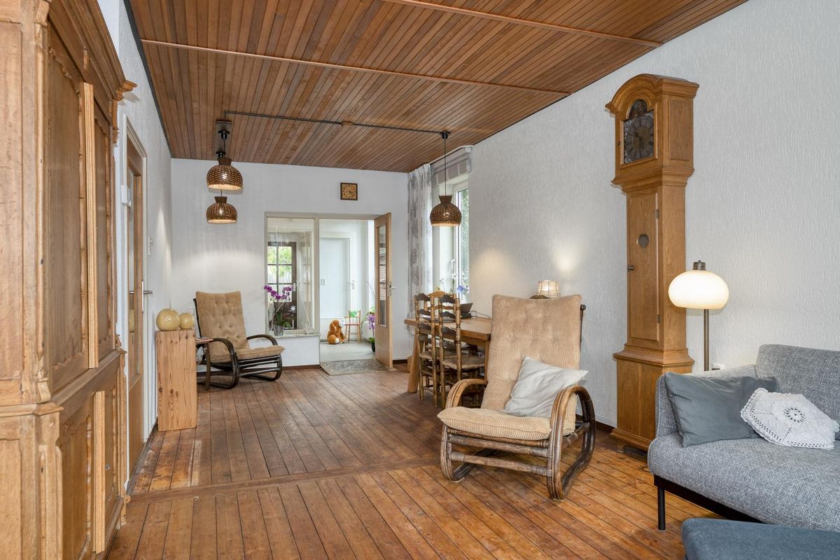 De achtertuin is mooi ruim van opzet met terras, gazon en tevens toegang tot de garage (deze is ook te bereiken vanuit de Vouerweg). De tuin biedt aangename bezonning en privacy.