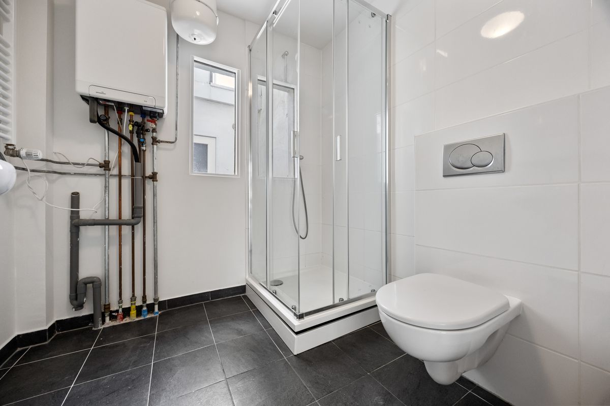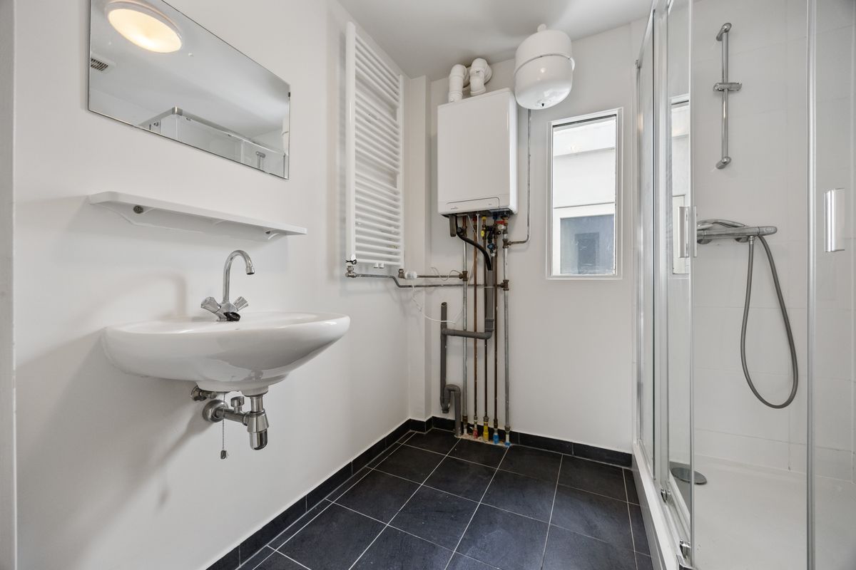 Aan de rustige achterzijde van de woning bevindt zich de slaapkamer, groot genoeg voor een tweepersoonsbed en een ruime kledingkast. Vanuit de slaapkamer heb je toegang tot de gedeelde patio, waar je een gezellig zitje kunt creëren om te genieten van je ochtendkoffie of een rustige avond buiten. De badkamer is voorzien van een douchecabine, zwevend toilet, wastafel, designradiator, wasmachineaansluiting en CV-ketel.