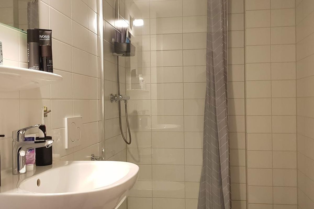 De badkamer is keurig afgewerkt, schoon en praktisch, met een 2e toilet, nette douche en wastafel. Voor de wasmachine en droger is een aparte kast beschikbaar, dus die staan niet in de weg in je badkamer. Het aparte toilet is in dezelfde lichte stijl afgewerkt als de badkamer. Aan het eind van de gang ligt links de ruime ouderslaapkamer en rechts loop je een flinke woonkamer met verzorgde open keuken binnen. Door de hoekligging heb je veel licht binnen en het fijne balkon op het zuidoosten maakt jouw woondroom compleet.