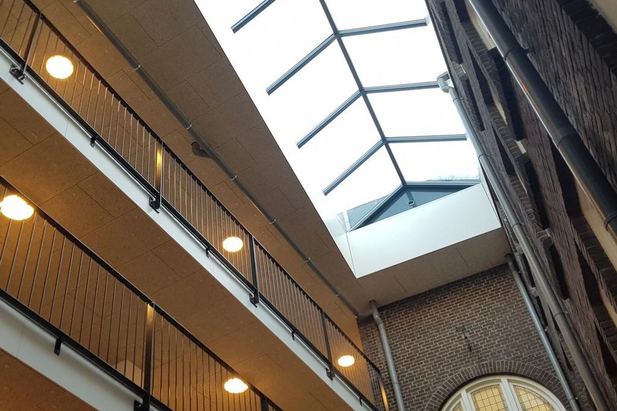 De wijk Bleijenhoek ligt ingeklemd tussen het uitgebreide en gezellige winkelhart van Dordrecht en de driesprong waar de Noord, de Beneden Merwede en de Oude Maas samenkomen. Je woont hier dus op loopafstand van de waterbushalte aan de Merwekade; over het water reizen is filevrij en geeft een extra dimensie aan je woon- werkverkeer. De appartementen zijn herontwikkeld in en aan het oorspronkelijke gebouw van het gemeentearchief. De voorgevel maakt je al nieuwsgierig naar de rest van het gebouw en als je binnenstapt word je niet teleurgesteld, zeker niet... Het oude en het nieuwe deel zijn aan elkaar verbonden middels een groot atrium met lichtstraat. Rechts rijzen de klassieke hoge ramen van de oudbouw naast je op, voor je wordt je blik naar het prachtige glas-in-loodraam getrokken.