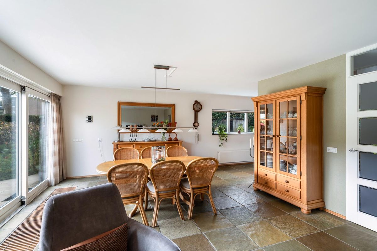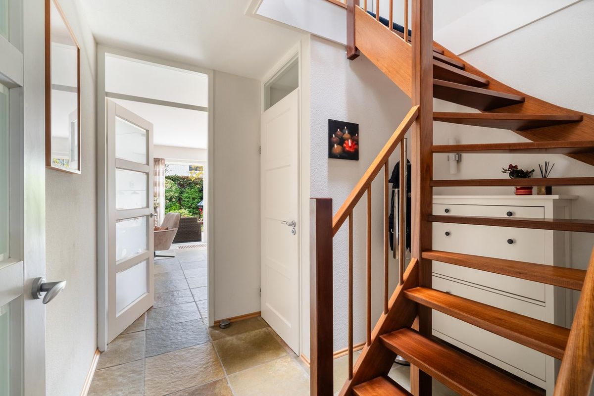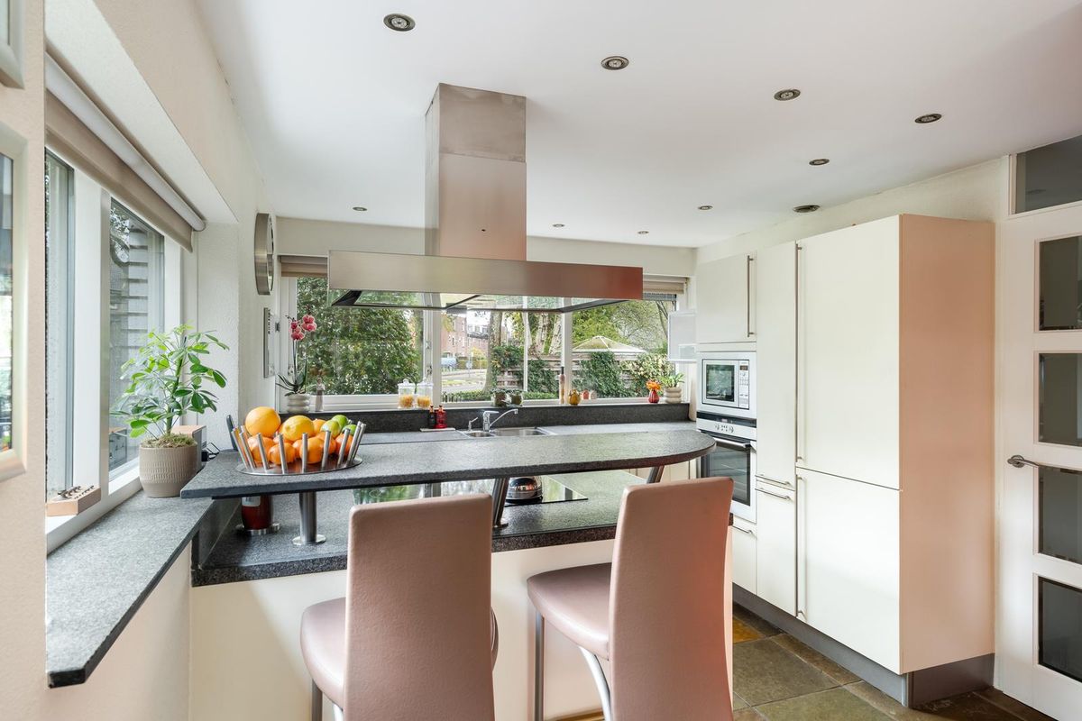 Voortuin met oprit voor 2 auto's, toegang naar de inpandige garage en overdekte entree naar de woning. Vanuit de entree zijn zowel de garage als de hal en de keuken bereikbaar. De garage heeft een afmeting van 2,72 x 6,10 m. en beschikt over een wateraansluiting, elektra en een garagedeur met loopdeur. Via de hal met verzorgde toiletruimte kom je in de ca. 8 meter brede woonkamer, met een kamerbrede raampartij en schuifpui naar de achtertuin. Er is dus volop lichtinval aanwezig, met extra ramen in de zijgevel. Aan de voorzijde ligt de open keuken in hoekopstelling met kookeiland. De keuken is in 2006 geplaatst en beschikt over een inductiekookplaat, afzuigkap, vaatwasmachine (2024), koel-vriescombinatie (2023), close-in boiler, magnetron en oven. Het keukenraam aan de voorzijde geeft een leuke doorkijk naar de straat.