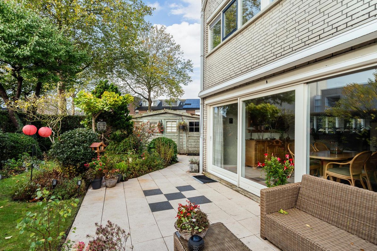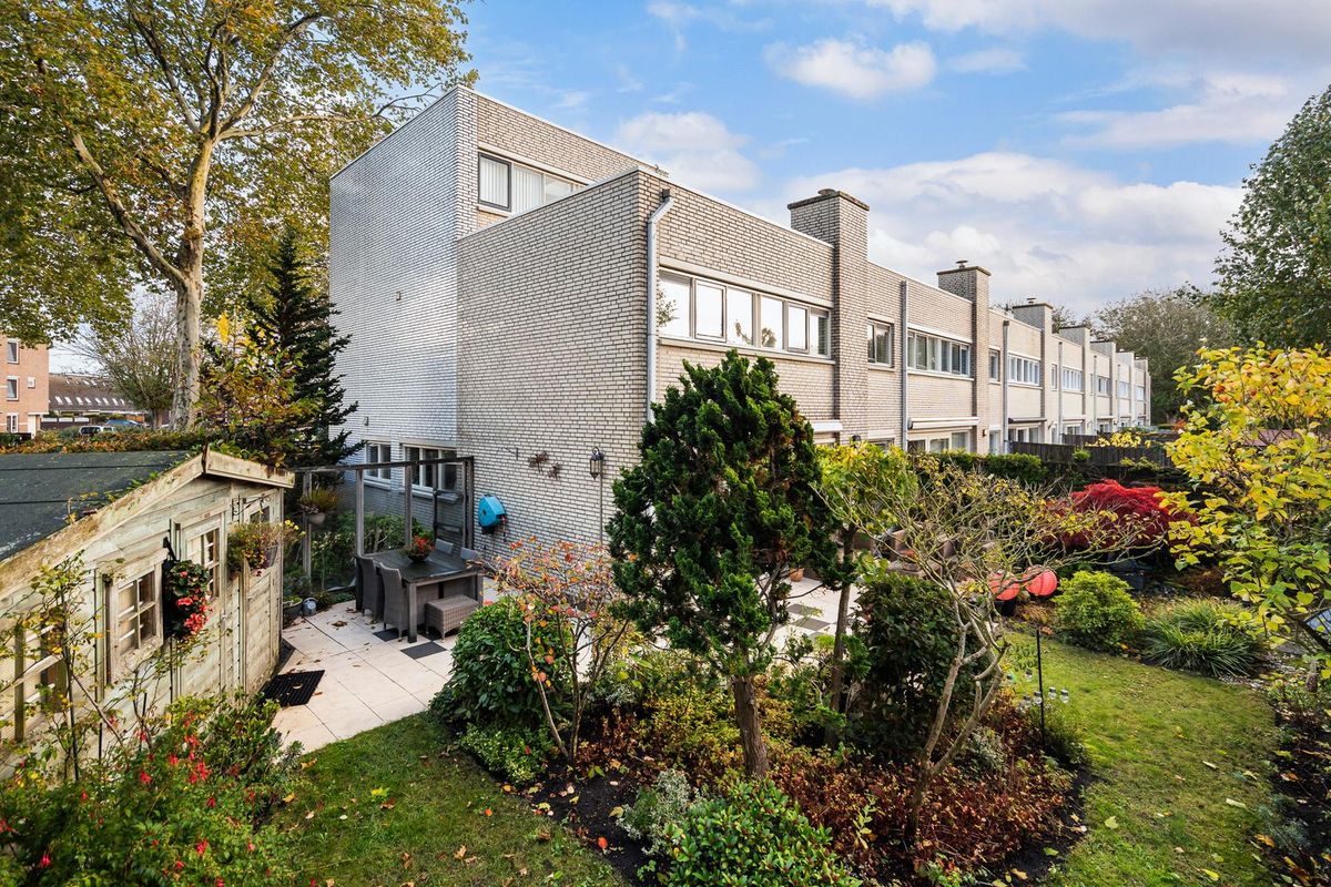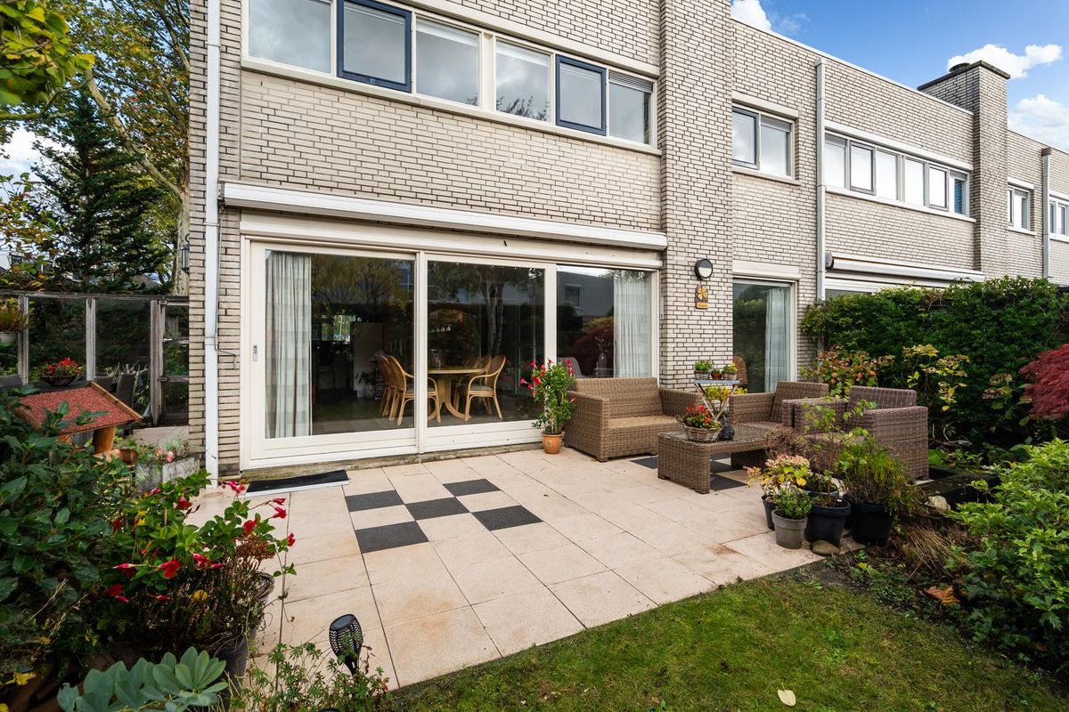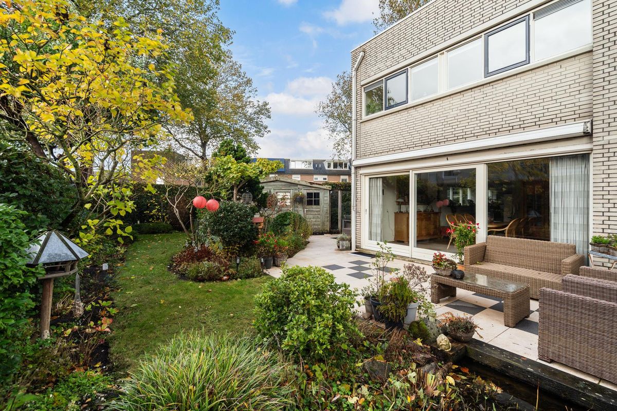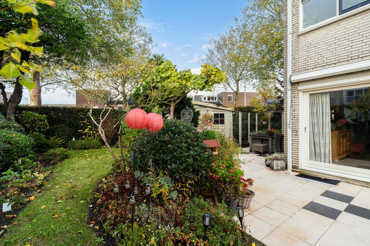 De achtertuin is op het zuiden gelegen en is achterin maar liefst 20 meter breed. Vanwege de hoekligging is er ook een ruime zijtuin met veel bergruimte in de houten berging. Er zijn meerdere terrassen aanwezig, een elektrisch zonnescherm, screens, een buitenkraan en uitgang naar de voorzijde.