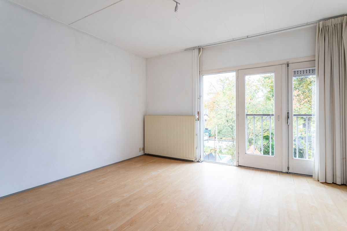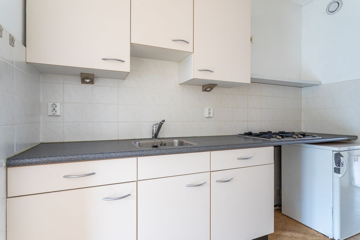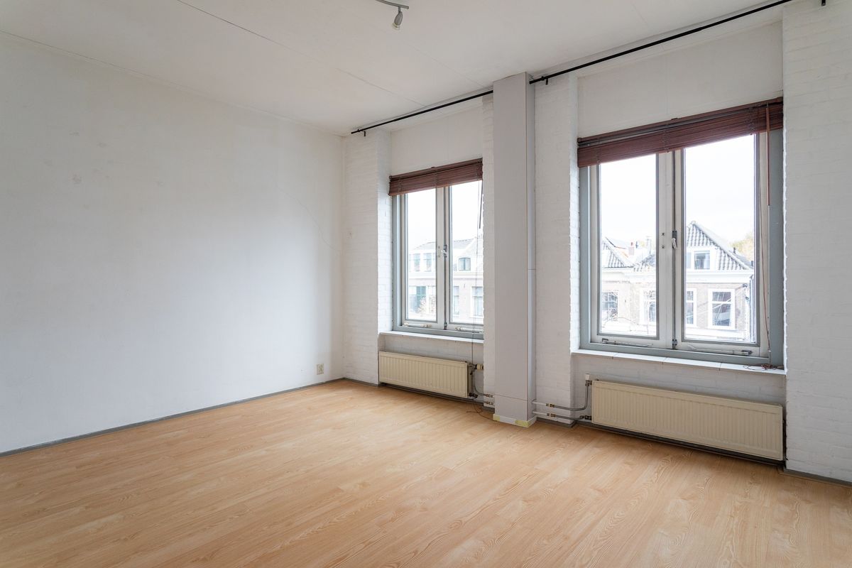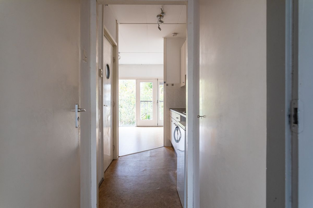 Je komt binnen in de keuken, die is voorzien van inbouwapparatuur en voldoende kastruimte. Aan de achterzijde bevindt zich de lichte woonkamer met openslaande deuren naar een Frans balkon — een fijne plek om de deuren open te zetten en te genieten van het uitzicht over de gracht.