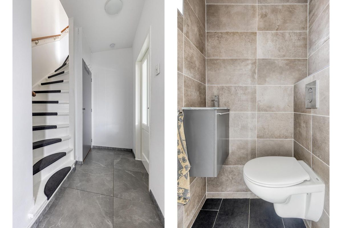 Via de straatzijde parkeer je je auto eenvoudig voor de deur. De entree is netjes en functioneel, en geeft toegang tot het moderne toilet, de trap naar boven én de verrassend ruime woonkamer.