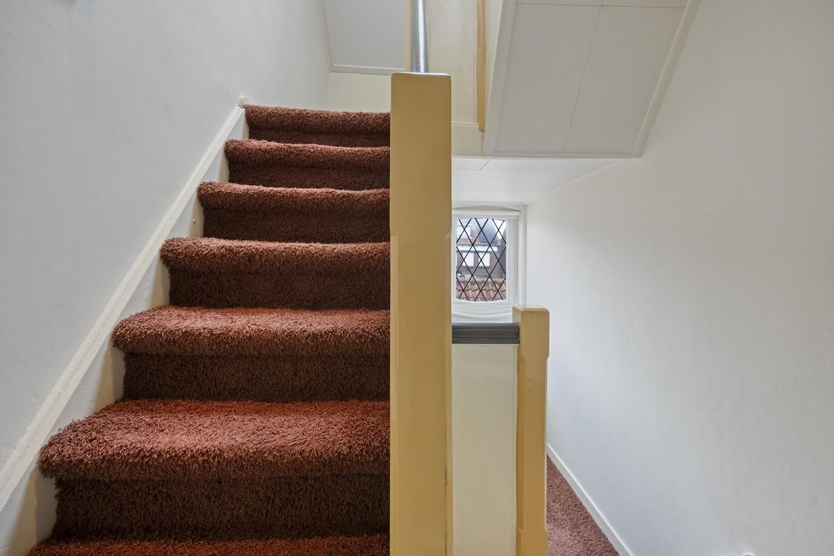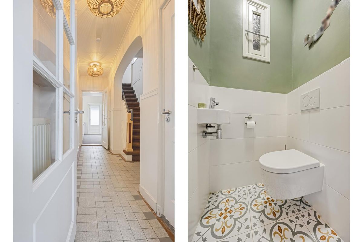 Op de eerste verdieping vind je drie ruime slaapkamers, allemaal voorzien van inbouwkasten en veel daglicht. De master bedroom heeft zelfs een balkon. Ideaal voor gezinnen, thuiswerkers of logees. De badkamer is netjes betegeld in grijs-wit en uitgerust met een wastafel, douche en toilet. Op de tweede verdieping kom je eerst op een ruime voorzolder, perfect als werkplek, waar ook de aansluitingen voor wasmachine en droger zich bevinden. Verder zijn hier nog twee ruime, lichte slaapkamers met een sfeervolle uitstraling.