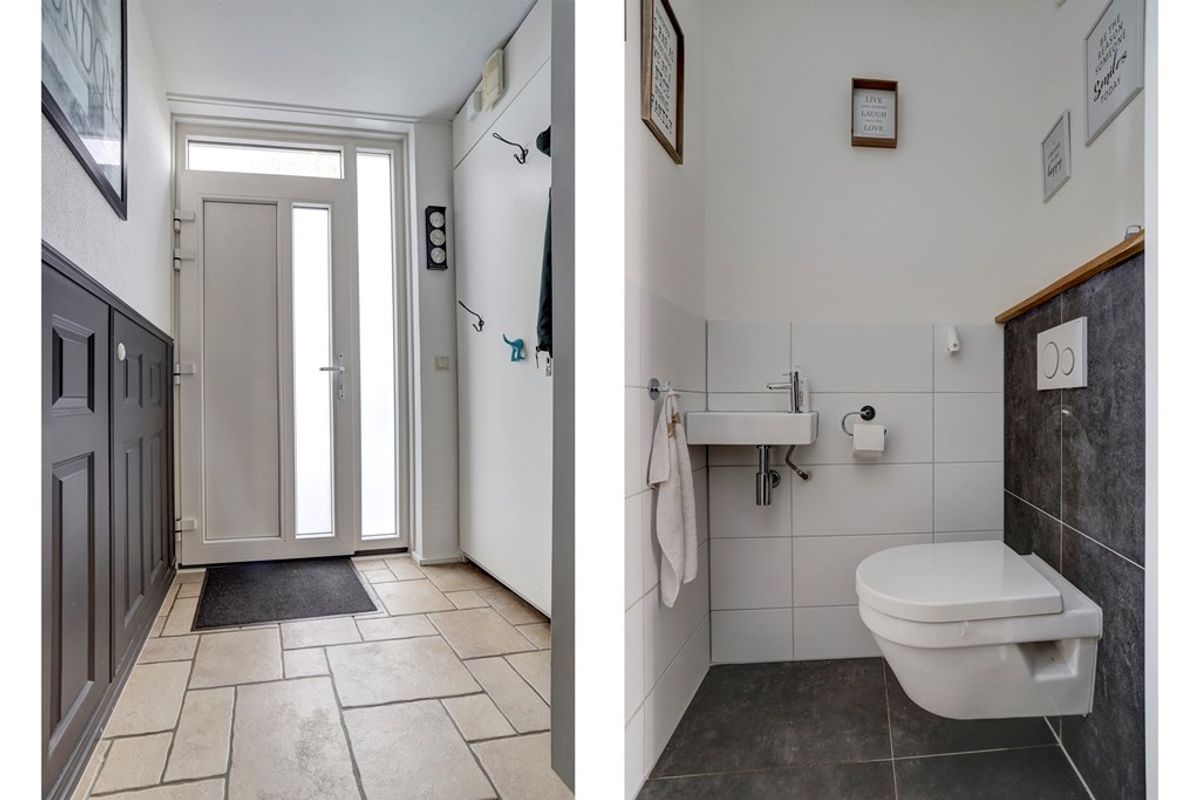 Via de verzorgde voortuin bereikt u de entree van de woning. In de hal bevinden zich de meterkast, het toilet, de trapkast en de trapopgang naar de eerste verdieping.
