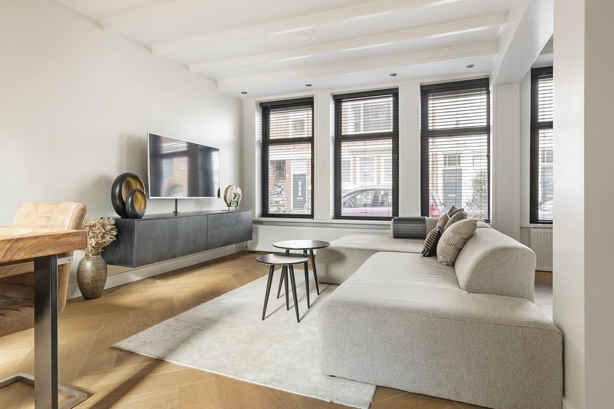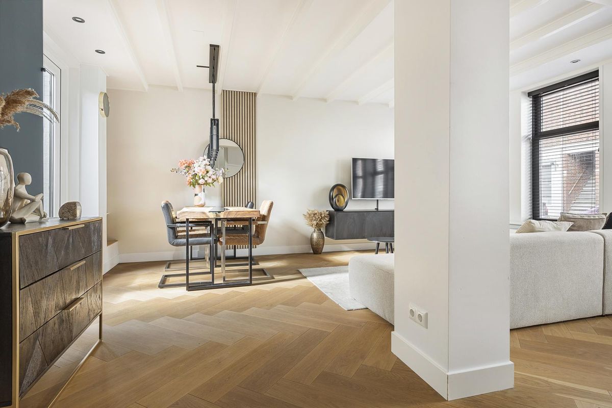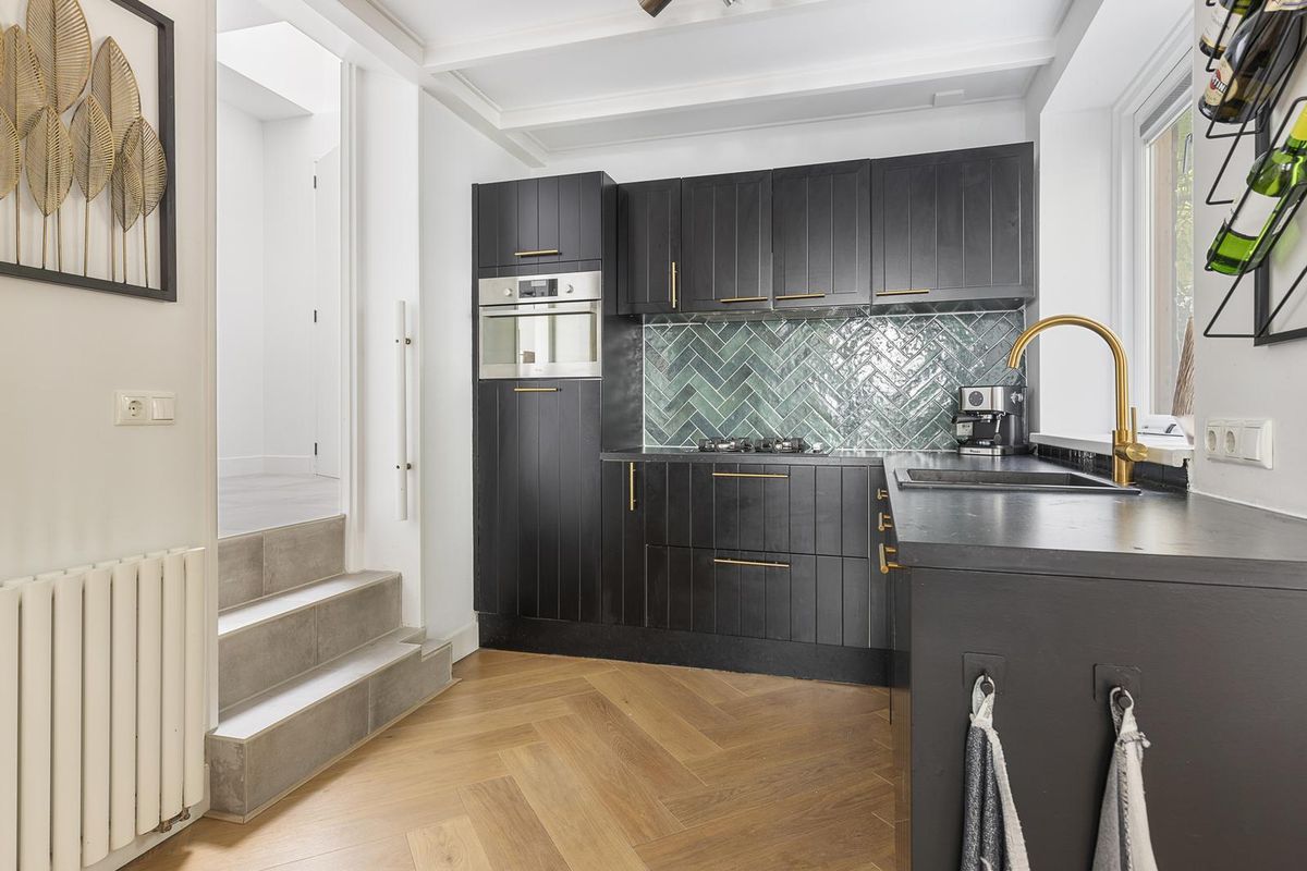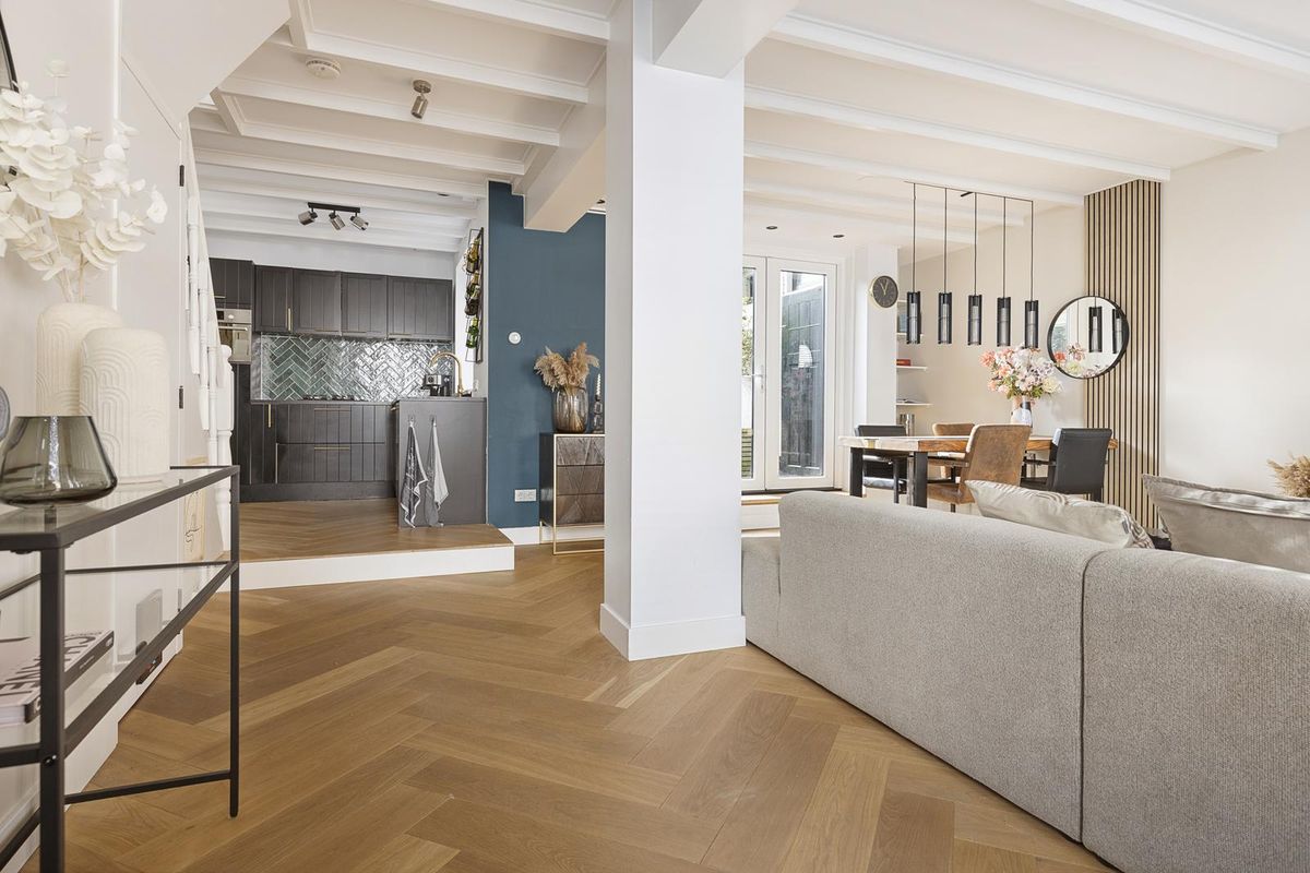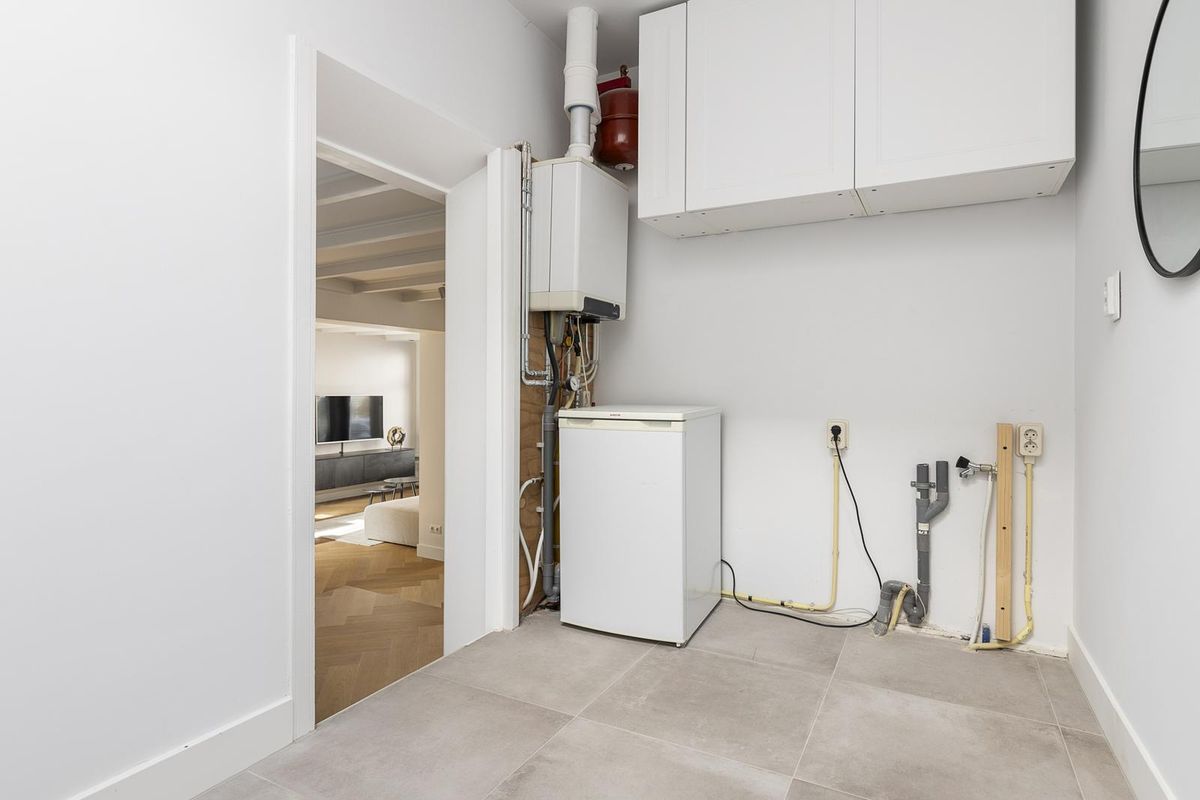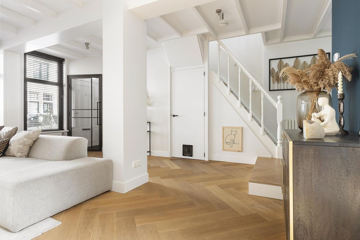 De woning is in 2022 volledig gestript, verduurzaamd en voorzien een moderne keuken, luxe badkamer en een prachtige houten visgraatvloer. De begane grond heeft speelse niveauverschillen, een kenmerkend plafond met zichtbare draagbalken en een klassieke trapleuning uit 1915, waarmee de geschiedenis van de woning subtiel zichtbaar is. Achter de keuken is een handige bijkeuken aanwezig met witgoedaansluitingen van 6 m2 en daarachter het moderne toilet. Via openslaande deuren loop je vanuit de woonkamer de heerlijke tuin op het zuidwesten in waar je gezellig kunt barbecueën met vrienden of tot rust kunt komen na een drukke werkdag.