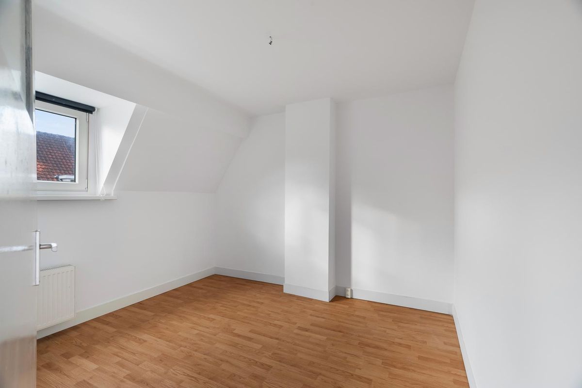 Overloop met witgoedaansluiting, drie slaapkamers, badkamer, dakterras aan de achterzijde.