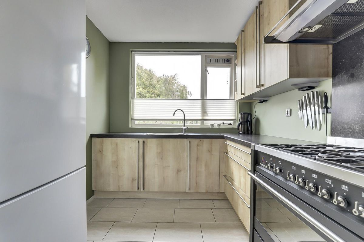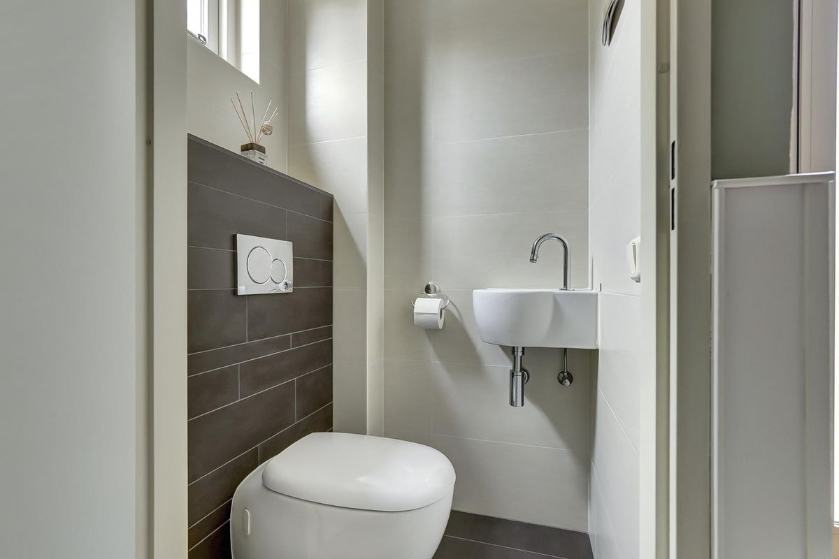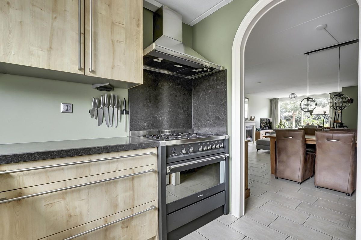 De entree met hal biedt toegang tot het moderne toilet, de meterkast en de trap naar de eerste verdieping. Vanuit de hal bereik je de ruime, uitgebouwde woonkamer. Deze is licht en sfeervol dankzij het extra zijraam en de elektrische haard. De open keuken aan de voorzijde is modern ingericht en voorzien van een fornuis met oven en 6-pits gaskookplaat, afzuigkap en voldoende kastruimte.