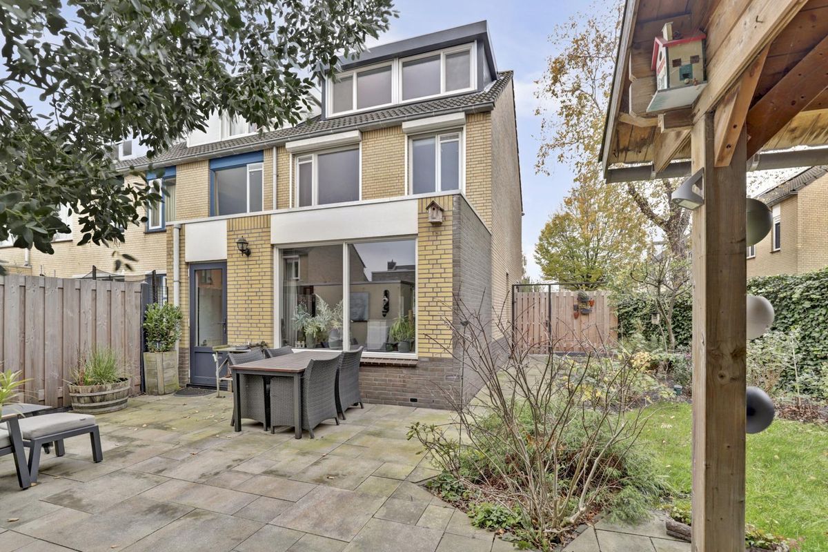 Via de praktische hal aan de achterzijde is de zonnige tuin direct bereikbaar. Een plek met volop mogelijkheden om te relaxen, te barbecueën of met vrienden te genieten onder de sfeervolle overkapping. Achter in de tuin staan bovendien twee praktische bergingen, ideaal voor fietsen of tuingereedschap.