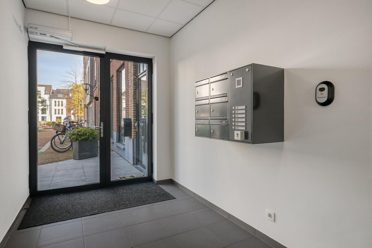Het complex is uitstekend toegankelijk. Via een automatische buitendeur stap je binnen in de ontvangsthal met brievenbussen en een moderne video-intercom. Een tweede automatische deur brengt je naar de centrale hal, waar je de trap of de lift naar de 1e verdieping neemt. De hal voor het appartement deel je met slechts één andere bewoner – ideaal voor extra rust en privacy.