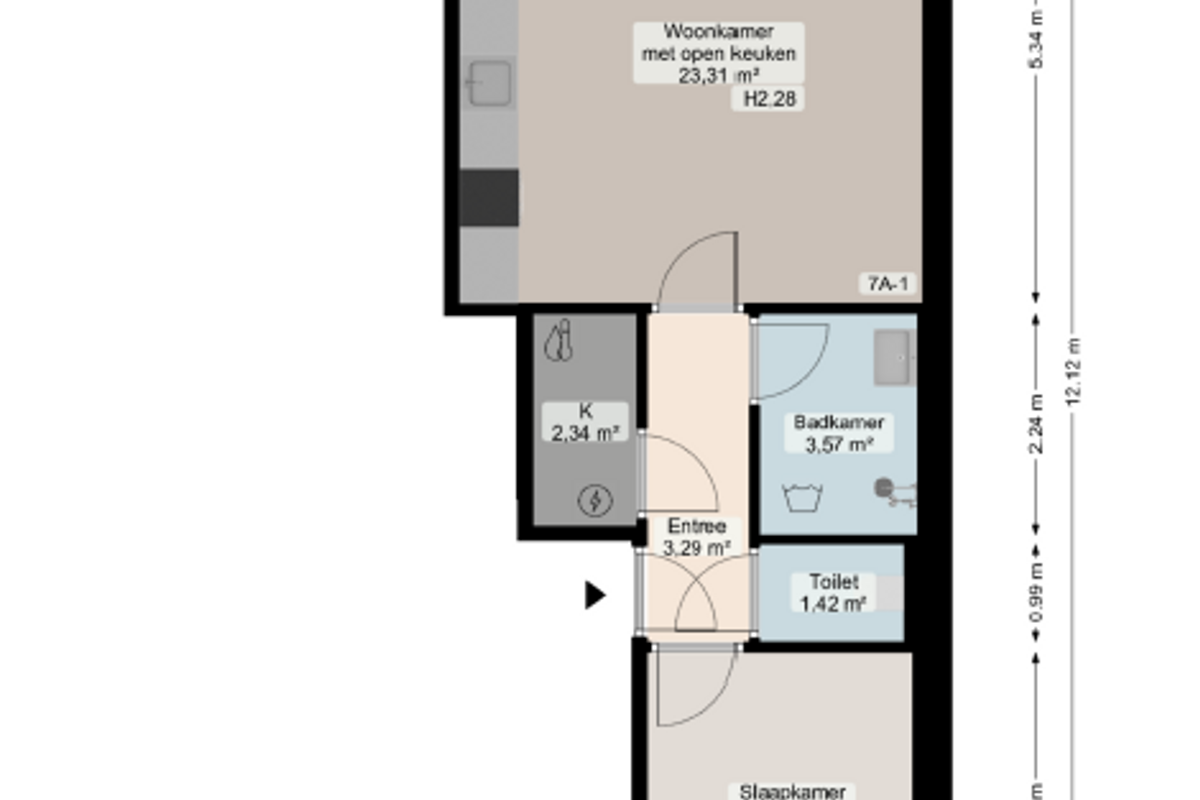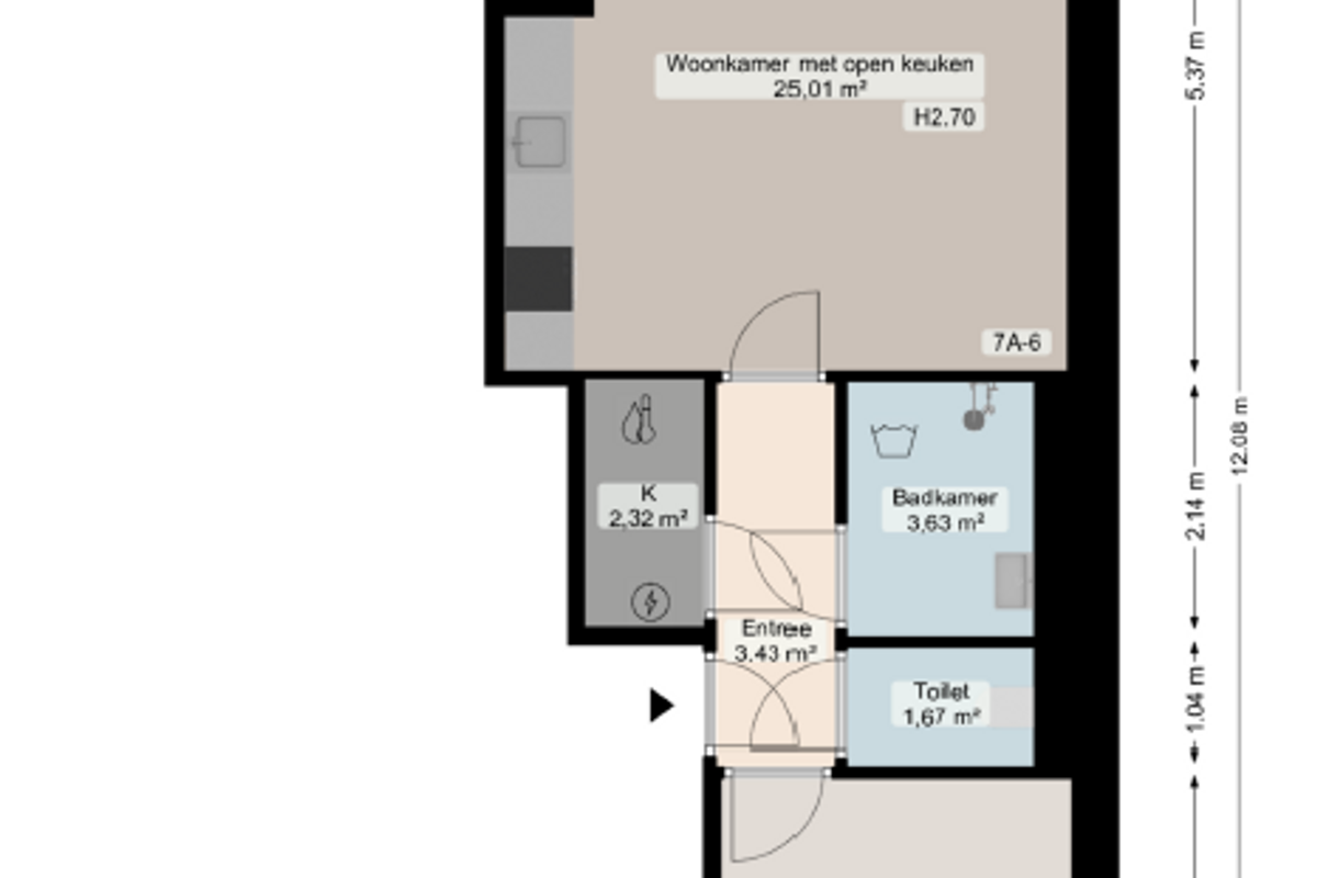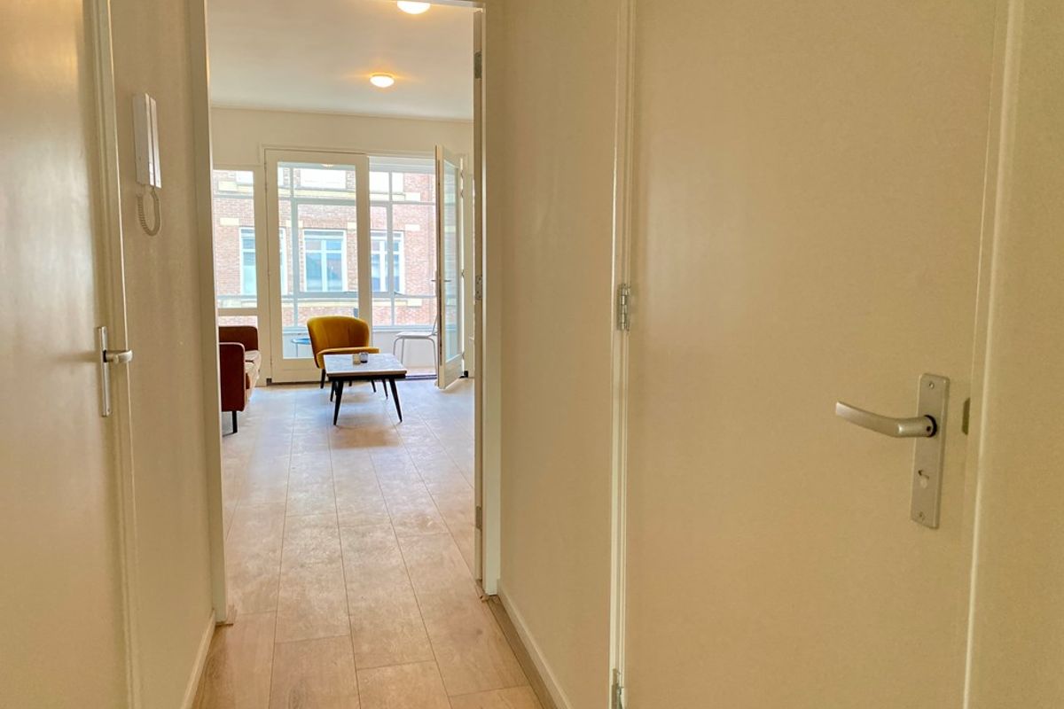 Bij binnenkomst van het appartement kom je terecht in de hal. Vanaf hier is de woonkamer, badkamer, apart toilet en de slaapkamer te bereiken. Ook is er nog een kleine bergruimte gelegen in het appartement. De ruime en lichte woonkamer met open keuken is voorzien van alle luxe inbouwapparatuur en heeft veel lichtinval van buitenaf. Vanaf hier is er een prachtig uitzicht op de binnenstad van Groningen.