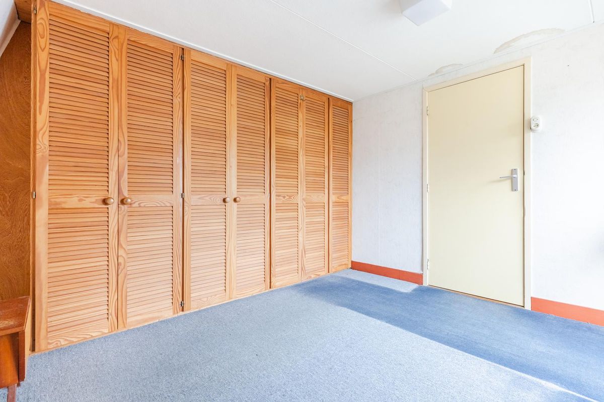 Overloop met veel kastruimte en toegang tot drie slaapkamers, waarvan twee aan de voorzijde met tevens met uitzicht op de Zuidertoren en één aan de achterzijde. De kamers bieden een fijne basis om te moderniseren en comfortabel in te delen. De slaapkamer aan de achterzijde is voorzien van een wastafel en heeft een deur naar het platte dak.