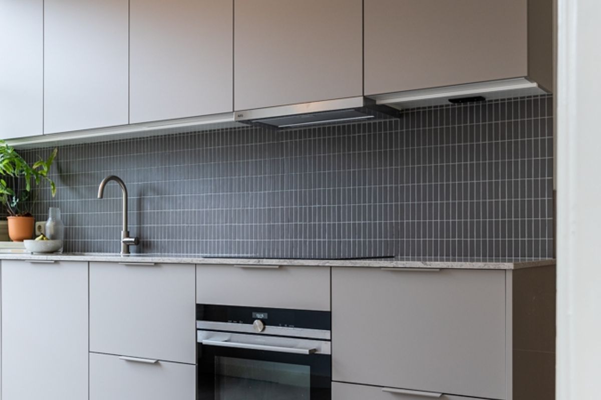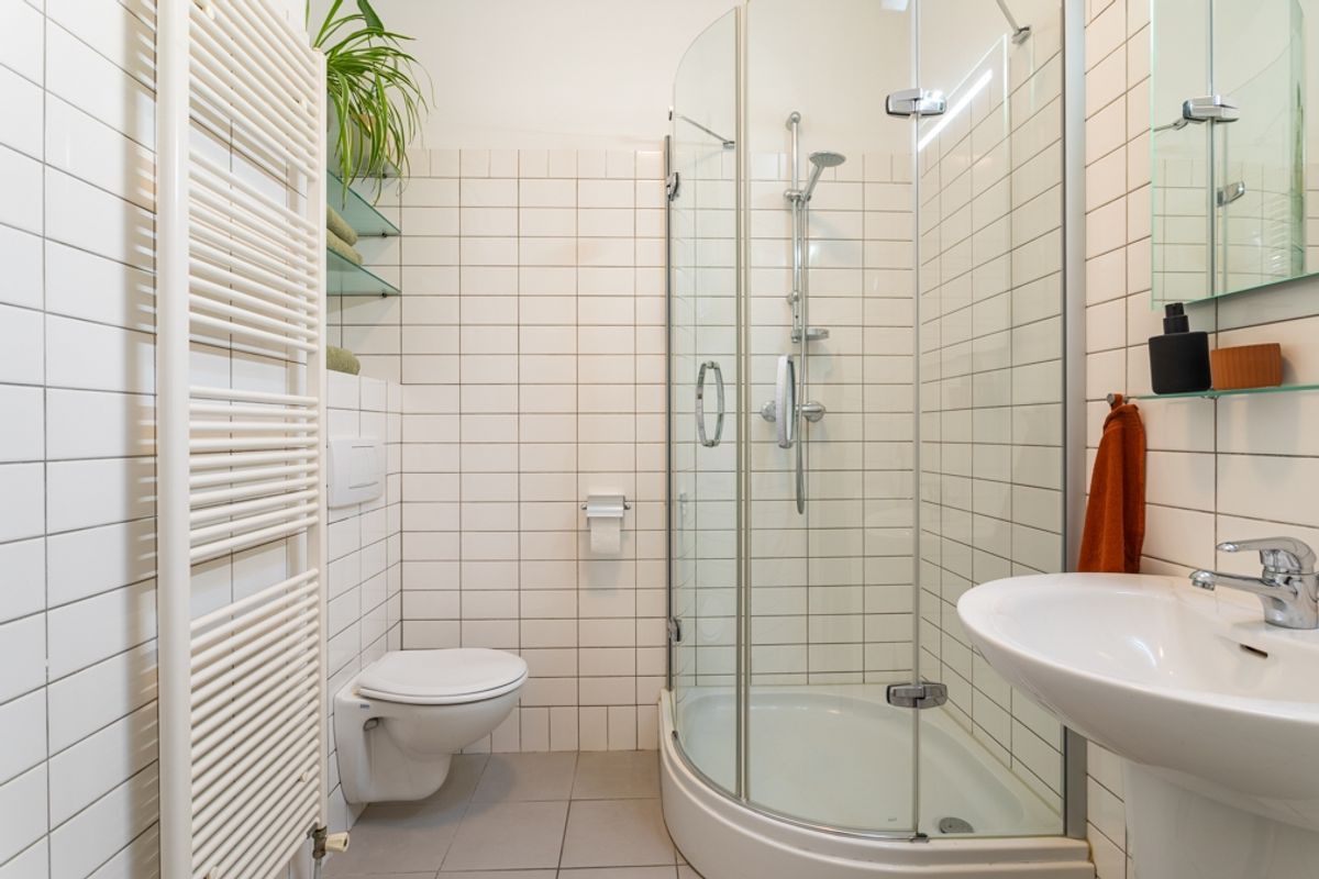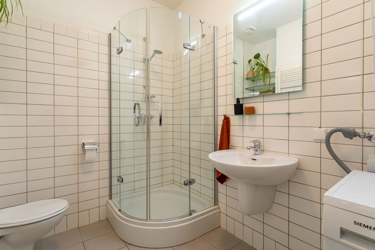 The two spaces can also be closed off with connecting doors for flexibility. From the dining room at the rear, you can enter the adjacent kitchen. The modern kitchen is fully equipped with an induction hob, extractor hood, oven, dishwasher, fridge-freezer, and ample cupboard space, and it has direct access to its own balcony.