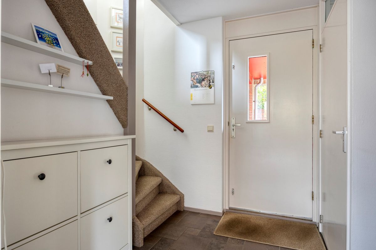Ook de voortuin is netjes onderhouden en past bij de stijl van de woning. Samen met de ruime oprit geeft het geheel een verzorgde, vriendelijke uitstraling.