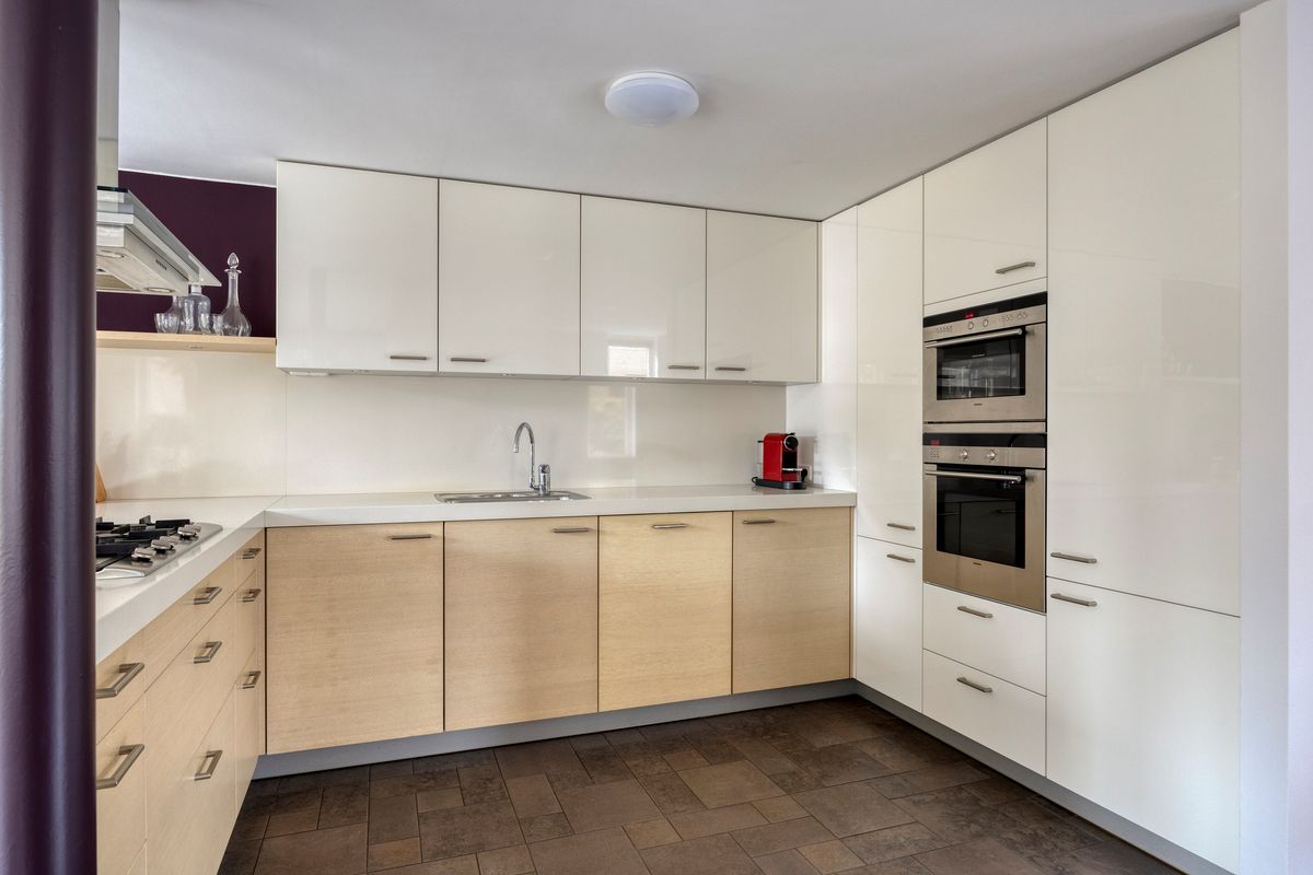 De keuken ligt centraal in huis en staat in open verbinding met de eethoek. De strakke keuken (2004) heeft veel werkruimte en is compleet uitgerust met een vijfpits gasfornuis, oven, magnetron, afzuigkap, koelkast en vaatwasser. Ideaal voor wie graag kookt en samen wil zijn.