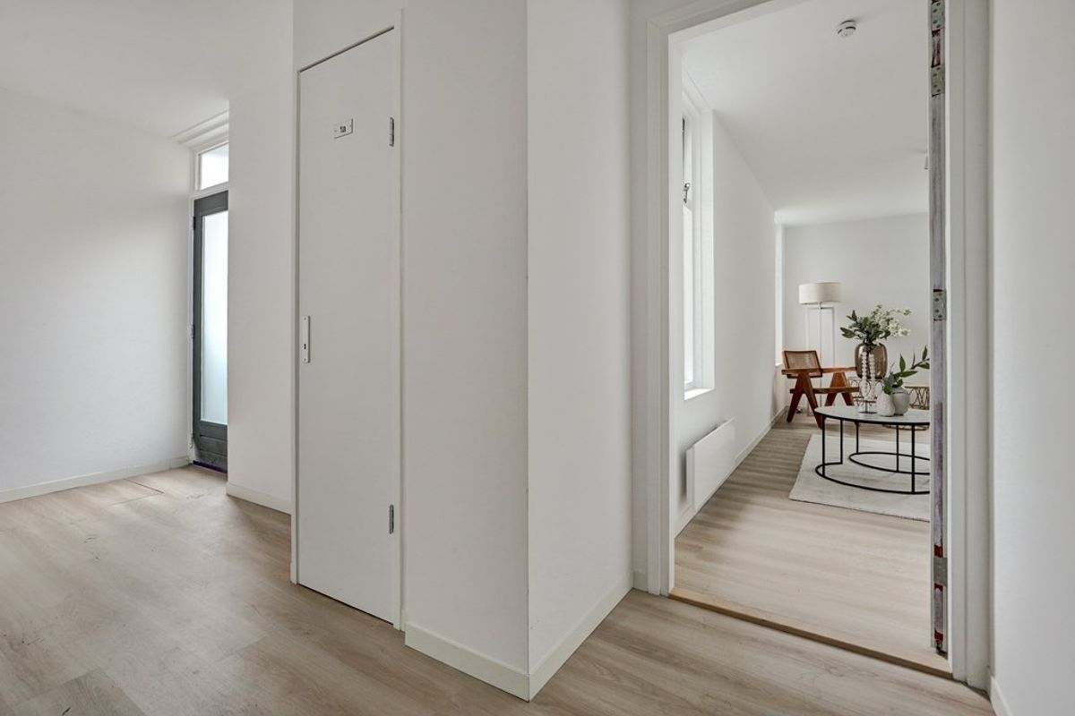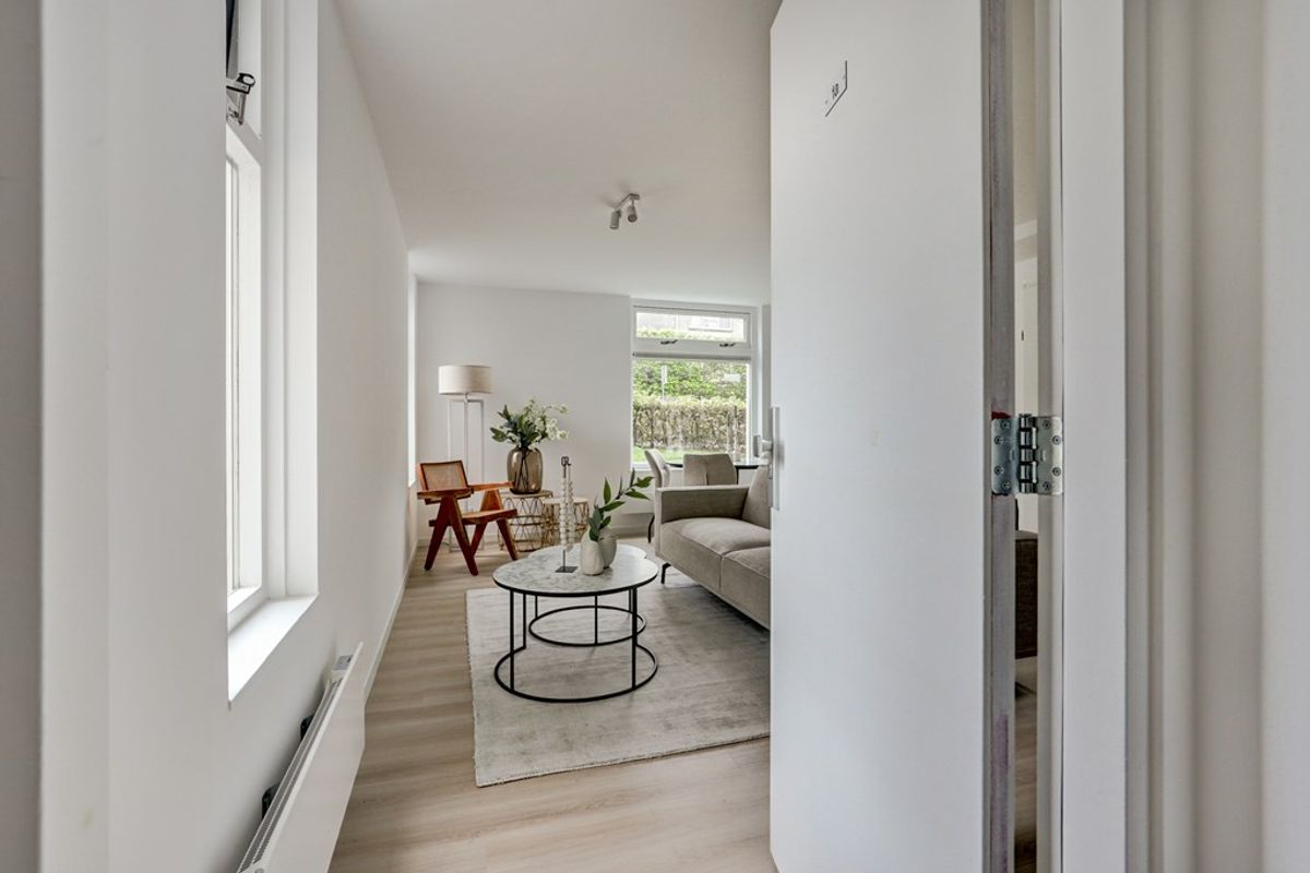 Via de voordeur kom je binnen in dit prachtige appartement. Echt alles is nieuw. De vloer is afgewerkt met PVC en alle wanden en plafonds zijn gestuukt én gesaust. Al het leidingwerk is ook nieuw.