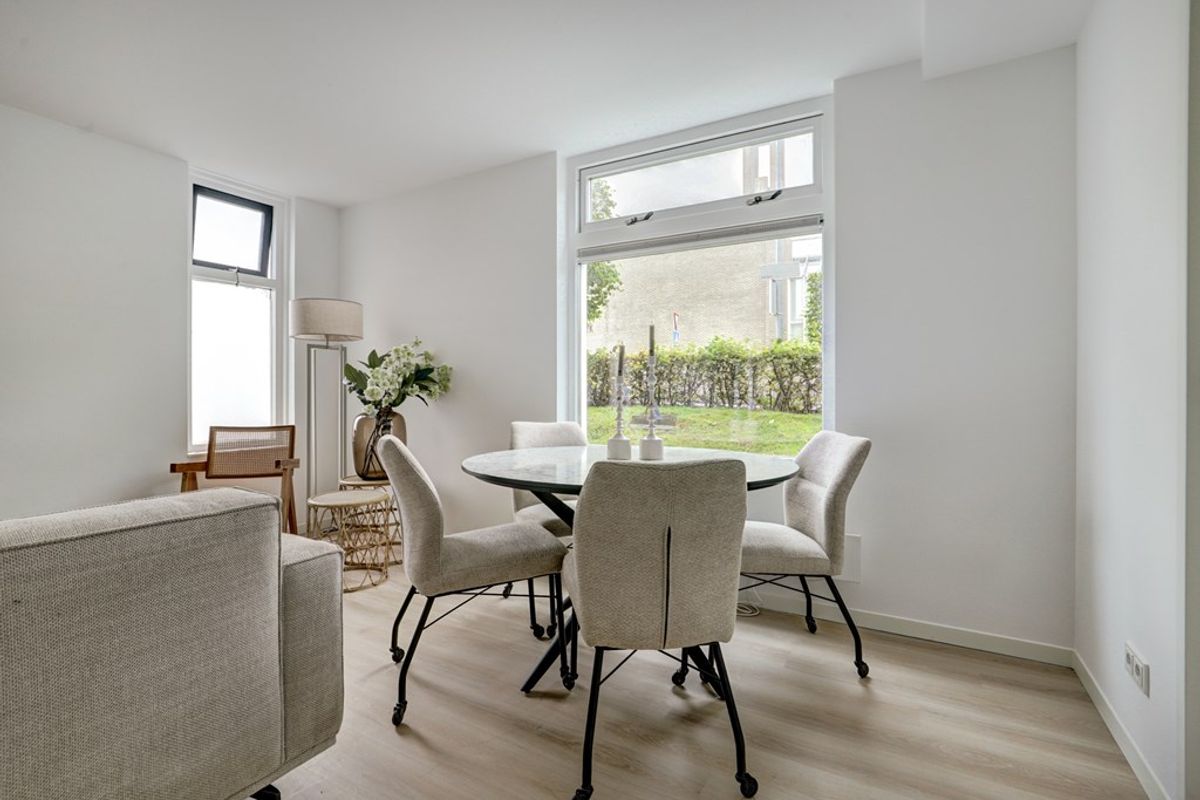 In de woonkamer heb je lekker de ruimte om te genieten van je eigen stek. Vanuit hier kijk je uit op de Vlietstroom en de Gelderseweg. De moderne keuken beschikt over een inductie kookplaat, een afzuigschouw, een koel/vriescombinatie, een combi-oven en een vaatwasser.