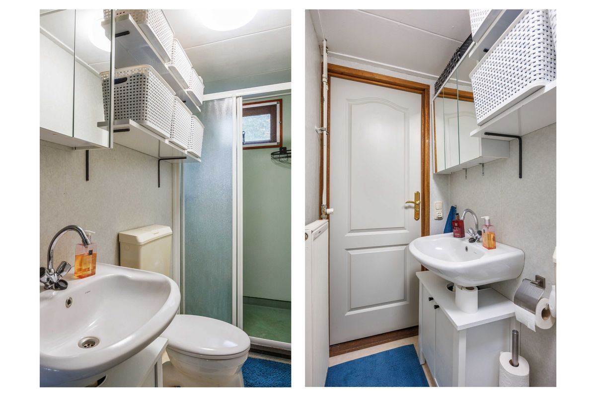 Aansluitend vind je twee slaapkamers en een nette badkamer met douche, wastafel en toilet. Via de vaste trap bereik je de verdieping, waar zich nog een derde slaapkamer bevindt. Samen maakt dit de woning geschikt voor het verblijf van tot wel zes personen.