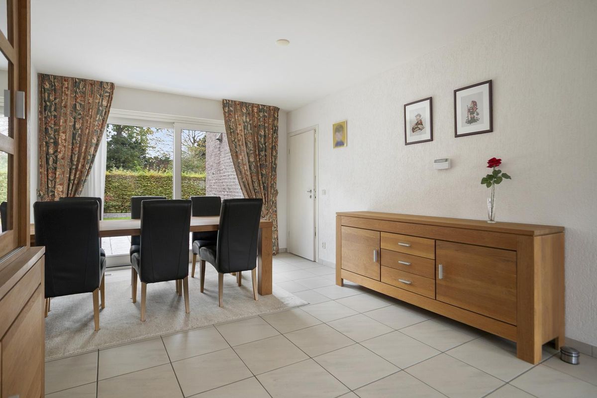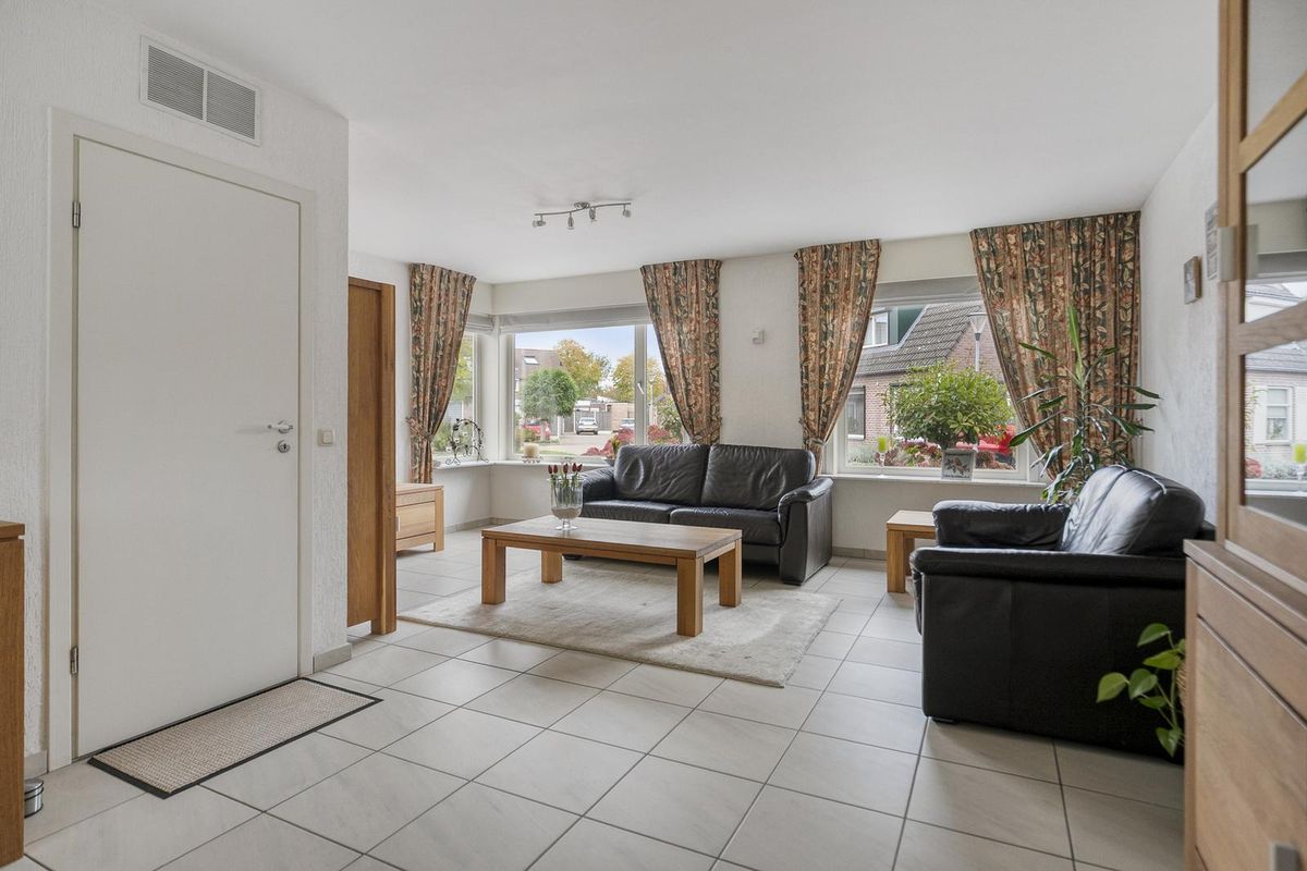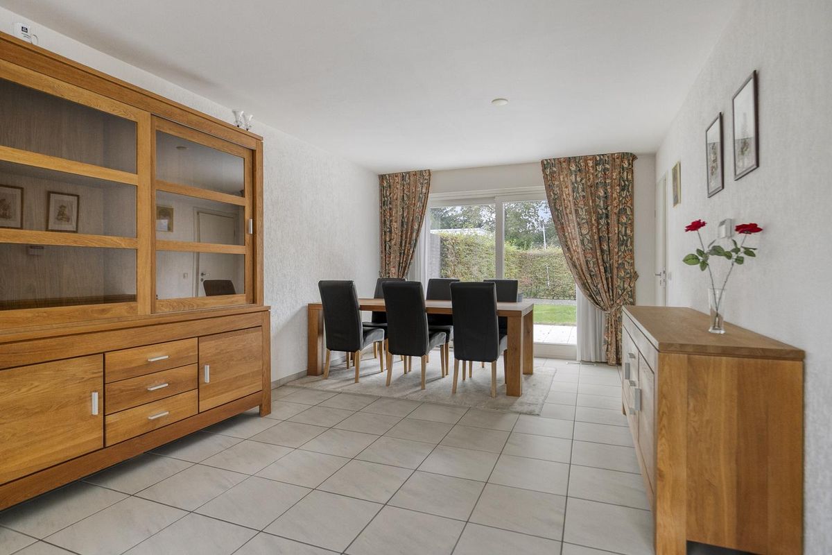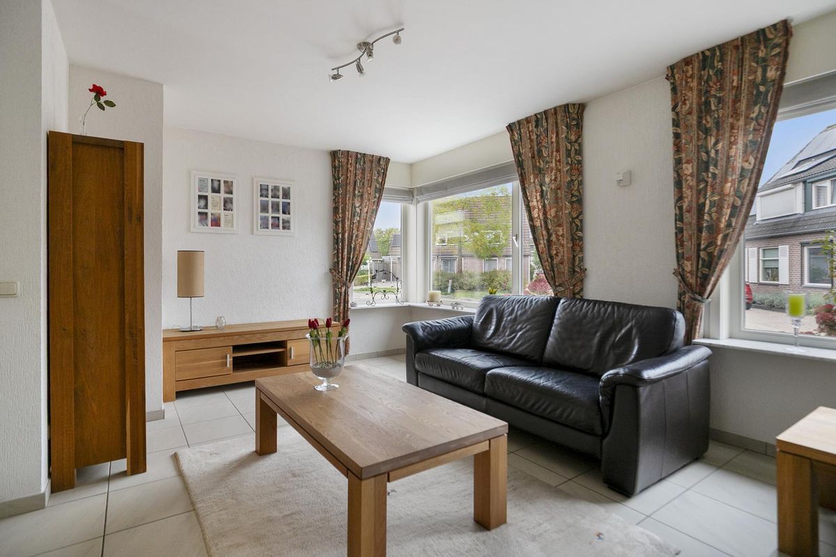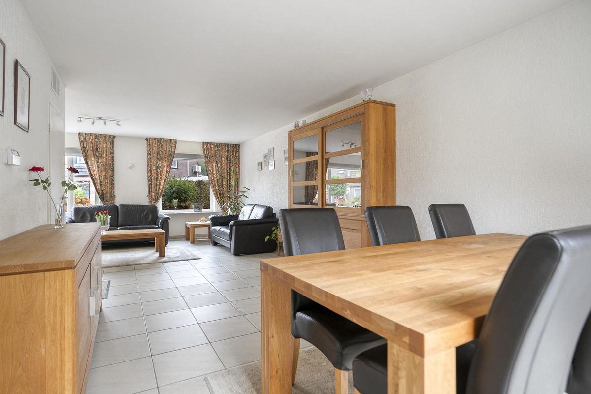 De royale L-vormige woonkamer heeft door de raampartijen veel natuurlijk licht, wat voor een aangename open sfeer zorgt. De zithoek is aan de voorzijde gelegen en een ruime eethoek aan de tuinzijde met schuifpui naar het terras en toegang tot de dichte keuken met aansluitend de bijkeuken, werkkamer en garage.