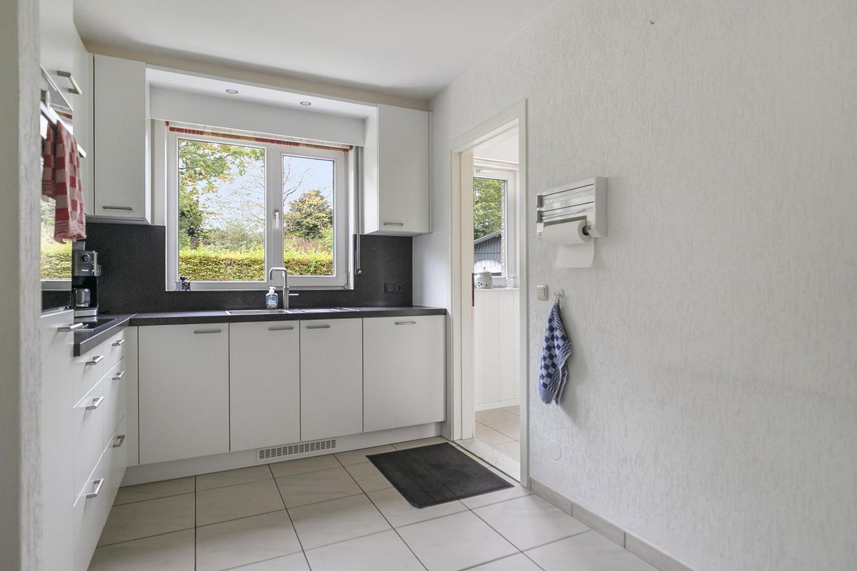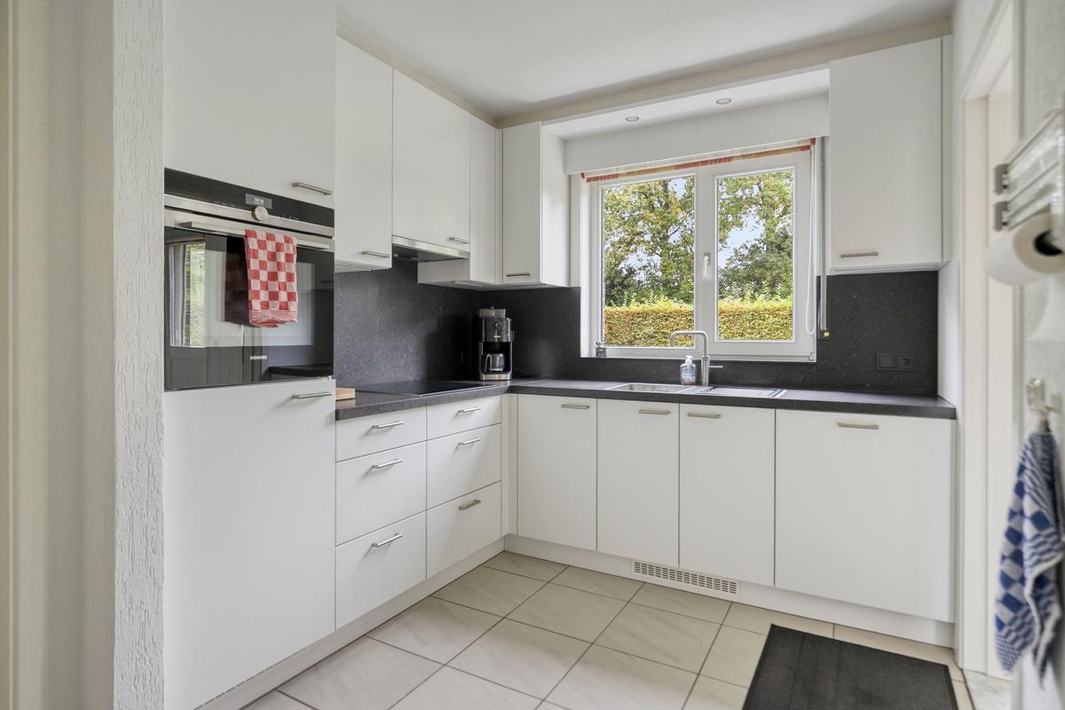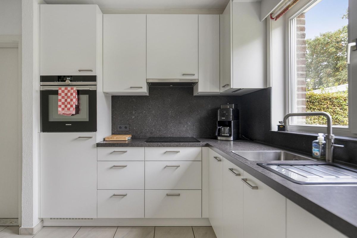 De moderne keuken (2016) is in hoekopstelling geplaatst en compleet uitgevoerd met inbouwapparatuur zoals inductie kookplaat, afzuigkap, combi-oven, vaatwasmachine en Quooker kokend water kraan. In de keuken is de toegang tot de praktische trappenkast en voldoende ruimte voor een ontbijttafel.