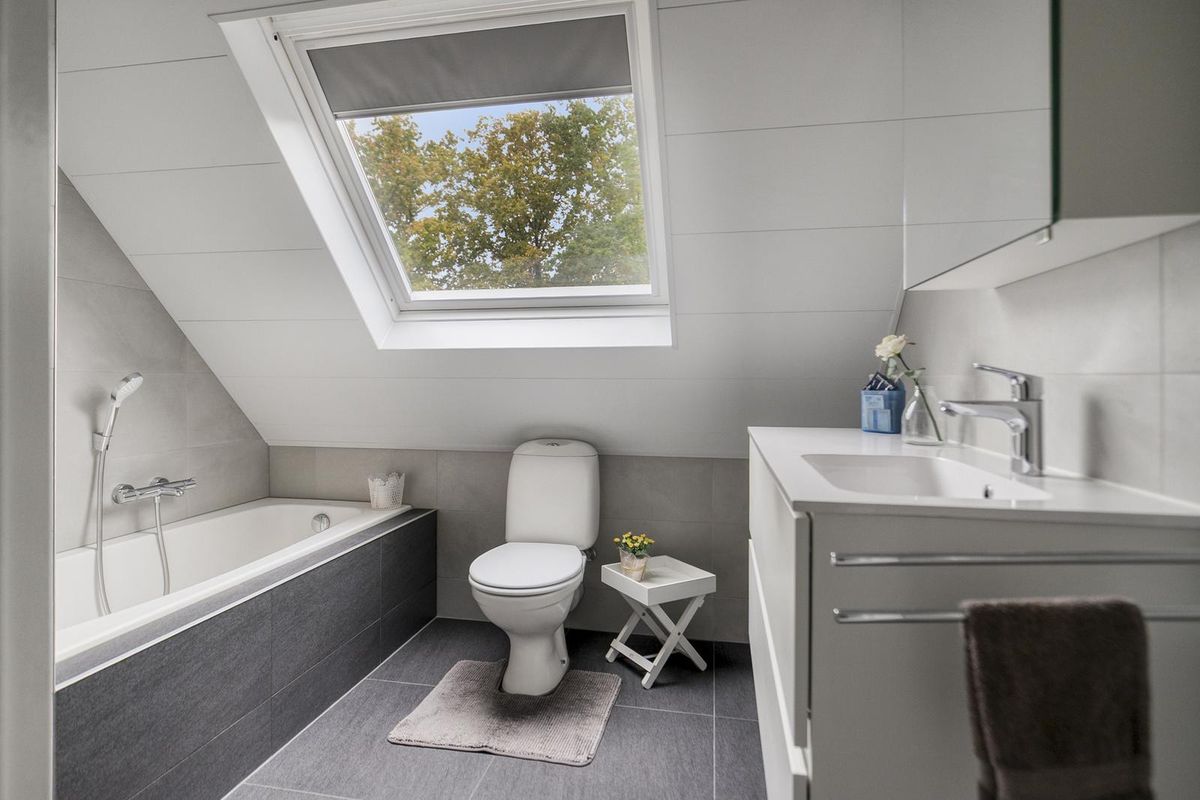 Op de eerste verdieping geeft de overloop toegang tot 4 slaapkamers en de badkamer. De badkamer is gemoderniseerd en voorzien van fraai tegelwerk, douchehoek met douchedeur, ligbad, tweede toilet en wastafelmeubel met spiegelkast en elektrische vloerverwarming. De grootste slaapkamer geeft toegang tot een berging waar de verwarmingsinstallatie is geplaatst.