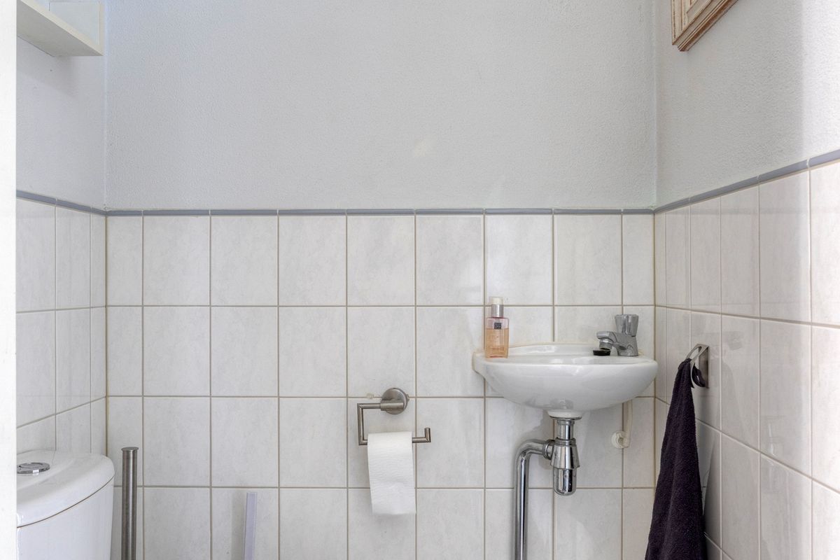 Bij binnenkomst betreed je de hal met houten vloer, stucwerk wanden en toegang tot het recent betegelde toilet met fonteintje. De hal biedt daarnaast toegang tot de meterkast, trapopgang naar de eerste verdieping en de ruime woonkamer.
