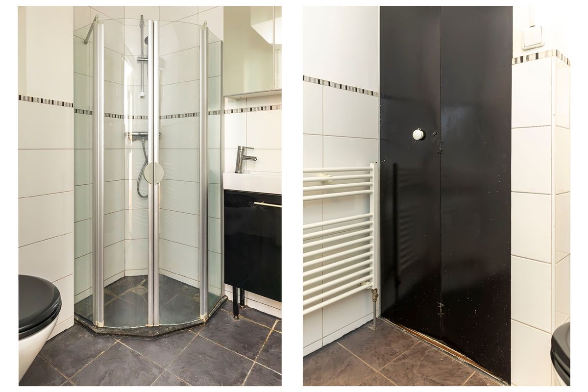 De badkamer is vergroot door een deel van de hal te gebruiken en is voorzien van een douchecabine, wc, wastafel met meubel. De slaapkamer is aan de voorzijde gelegen met een mooie houten vloer en die door de hele woning is doorgelegd.