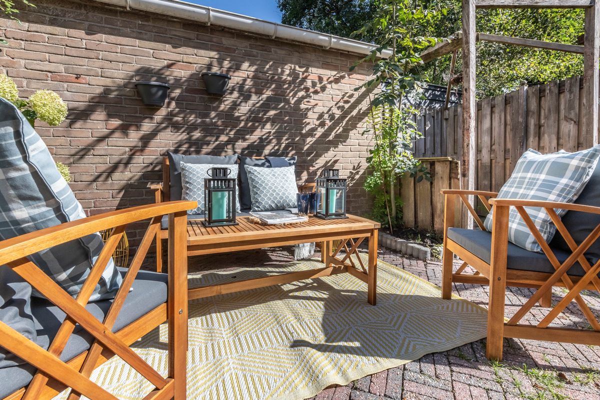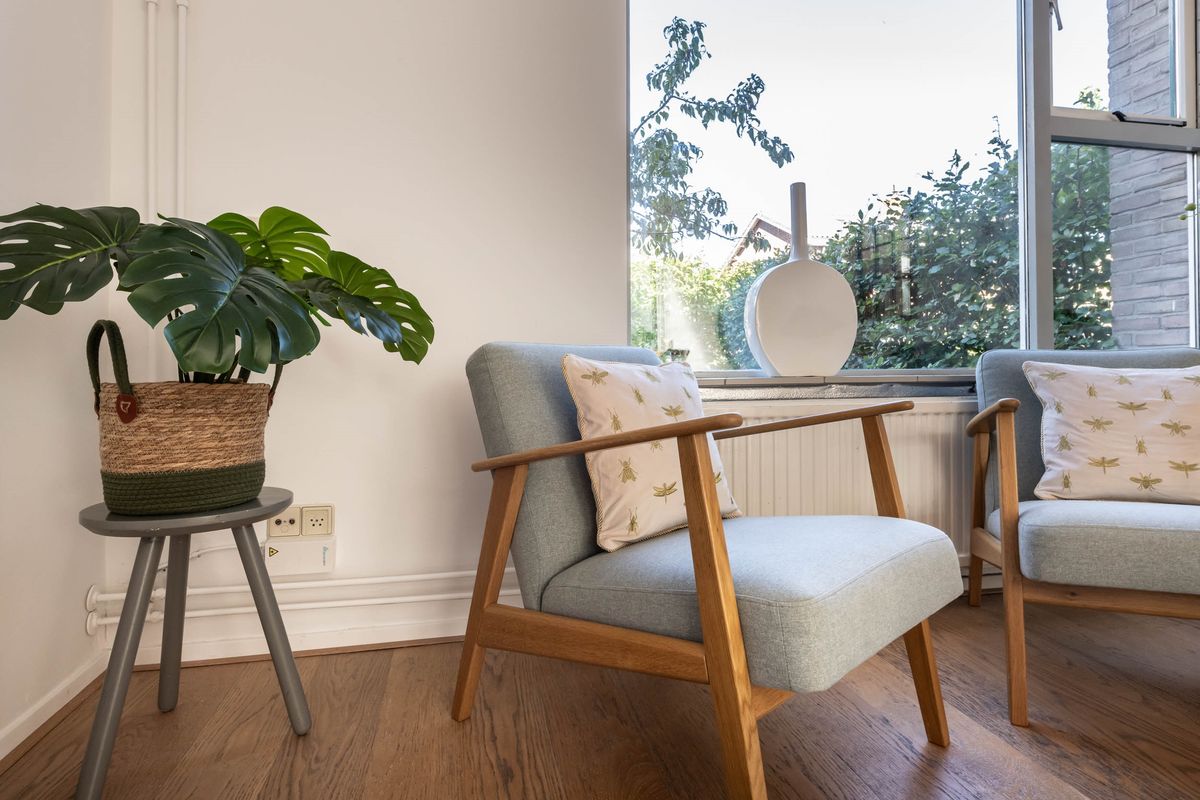 De lichte woonkamer profiteert van grote ramen en een prettige plafondhoogte, terwijl de zuidgerichte tuin de hele dag door zon biedt – ideaal om te ontspannen of te genieten met familie en vrienden.