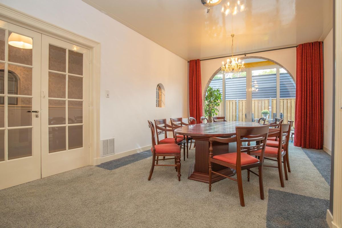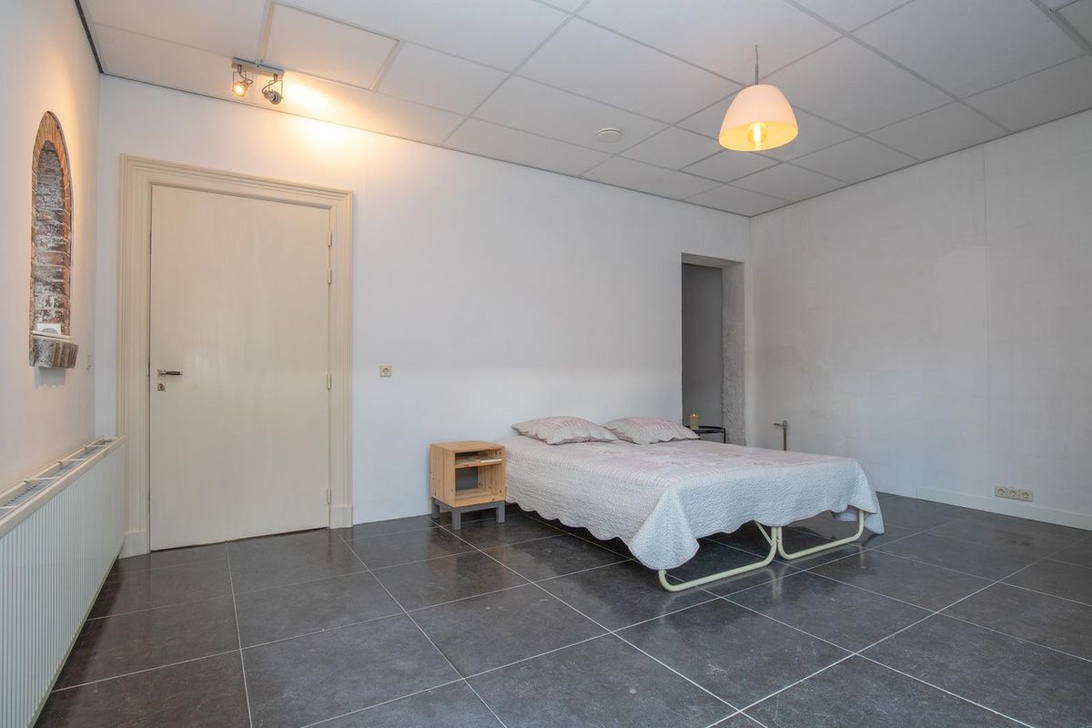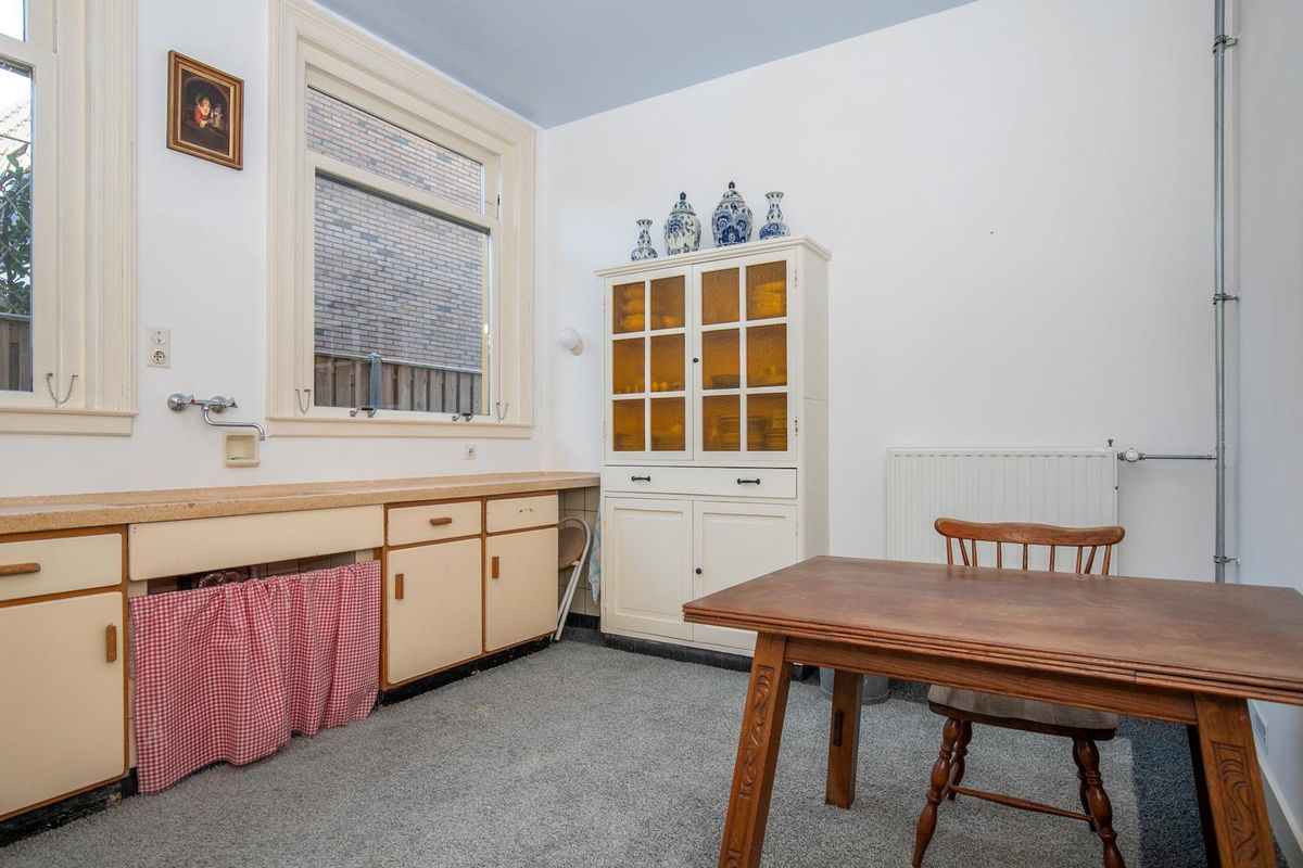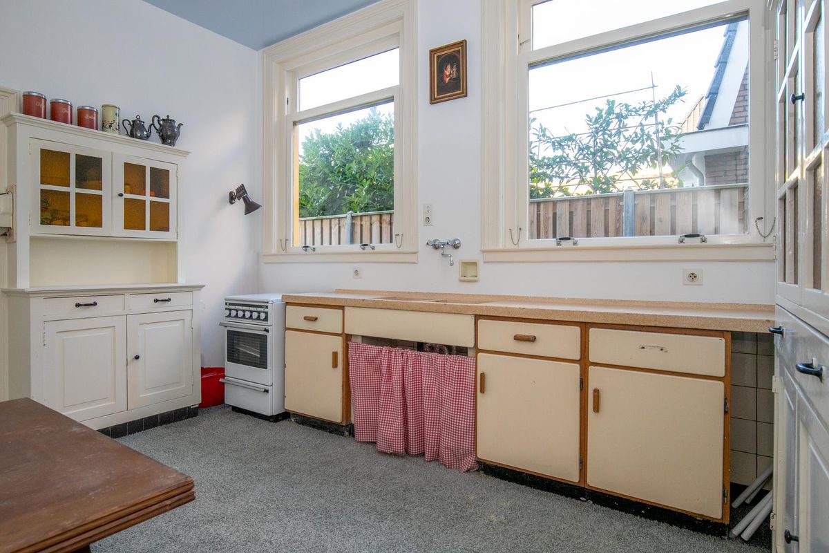 Uniek is de multifunctionele ruimte van maar liefst 33 m² – ideaal als eetkamer, atelier, werkkamer of hobbyruimte. Dankzij de grote glazen schuifpui staat deze ruimte in directe verbinding met het sfeervolle, besloten achterterras van ca. 40 m². De authentieke keuken met stenen werkblad en klassieke gootsteen is een knipoog naar het verleden, en wordt gecomplementeerd door een praktische bijkeuken.