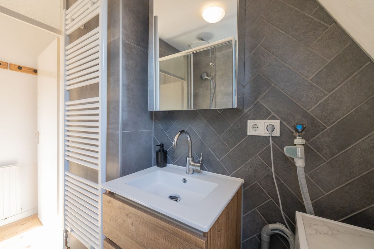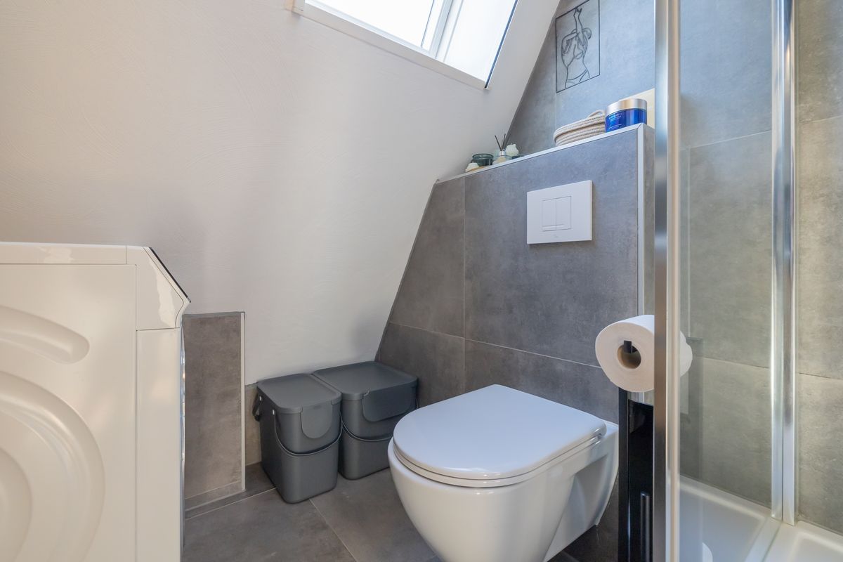 De moderne badkamer is het middelpunt van het appartement, met een royale douche, een keramische wastafel en een slimme spiegelkast. Alles is in 2022 vernieuwd, inclusief het toilet en een handige designradiator.