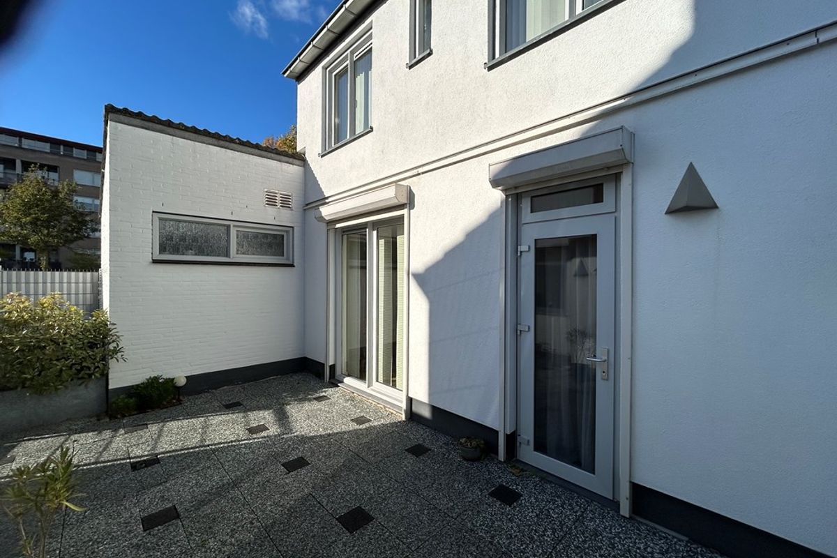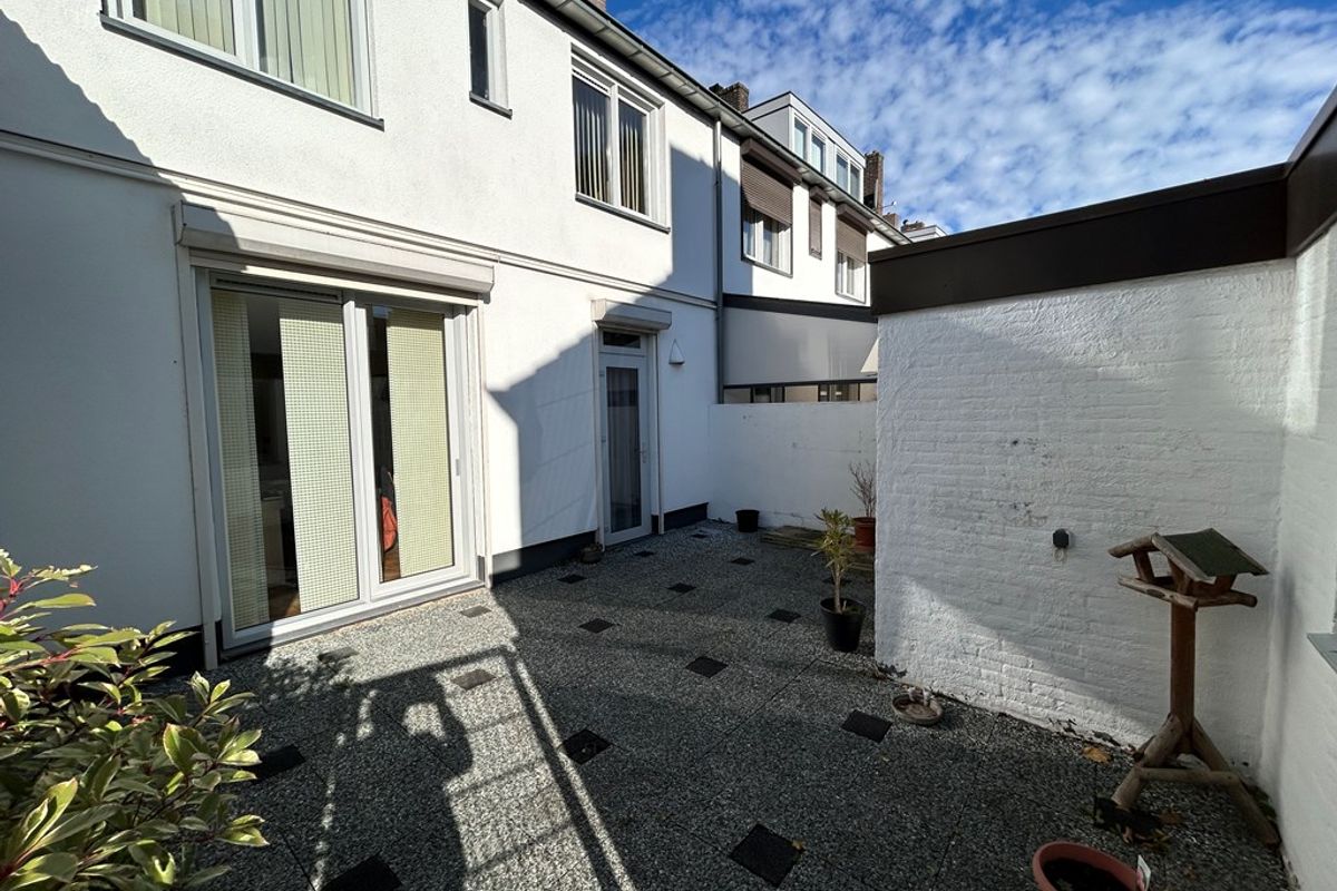 Achtertuin 5,00 x 3,00 is eveneens geheel bestraat en voorzien van een afsluitbare poort en deur naar garage.
