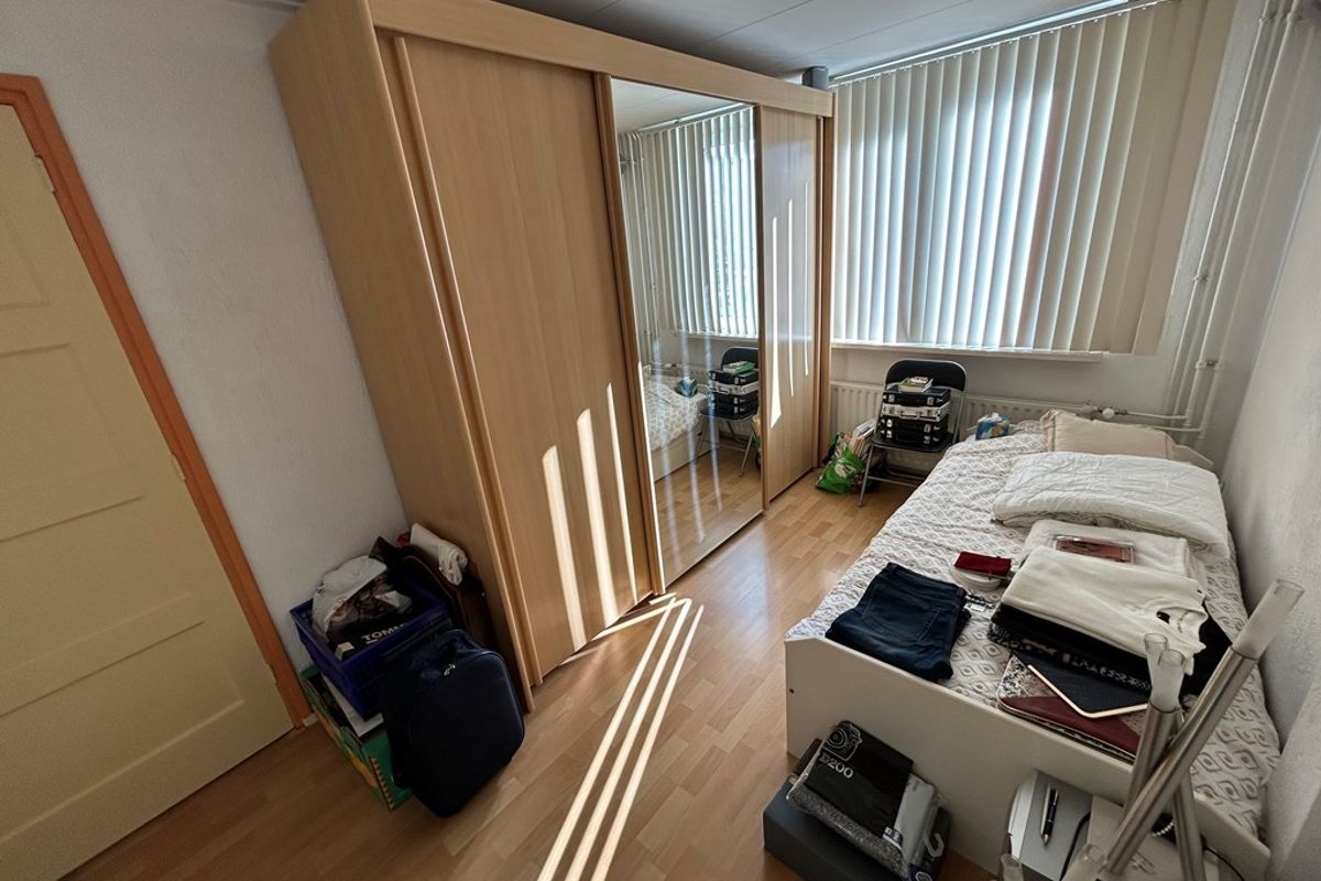 Slaapkamer 2: 3,05 x 2,45 met laminaatvloer en muurkast.