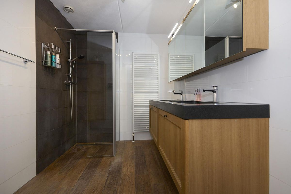 De moderne badkamer is geheel betegeld en voorzien van een inloopdouche met thermostaatkraan, dubbel wastafelmeubel, spiegelkast, radiator en keramische wand- en vloertegels. Tevens bevindt zich op deze verdieping een separaat tweede toilet met wandcloset en mechanische ventilatie.