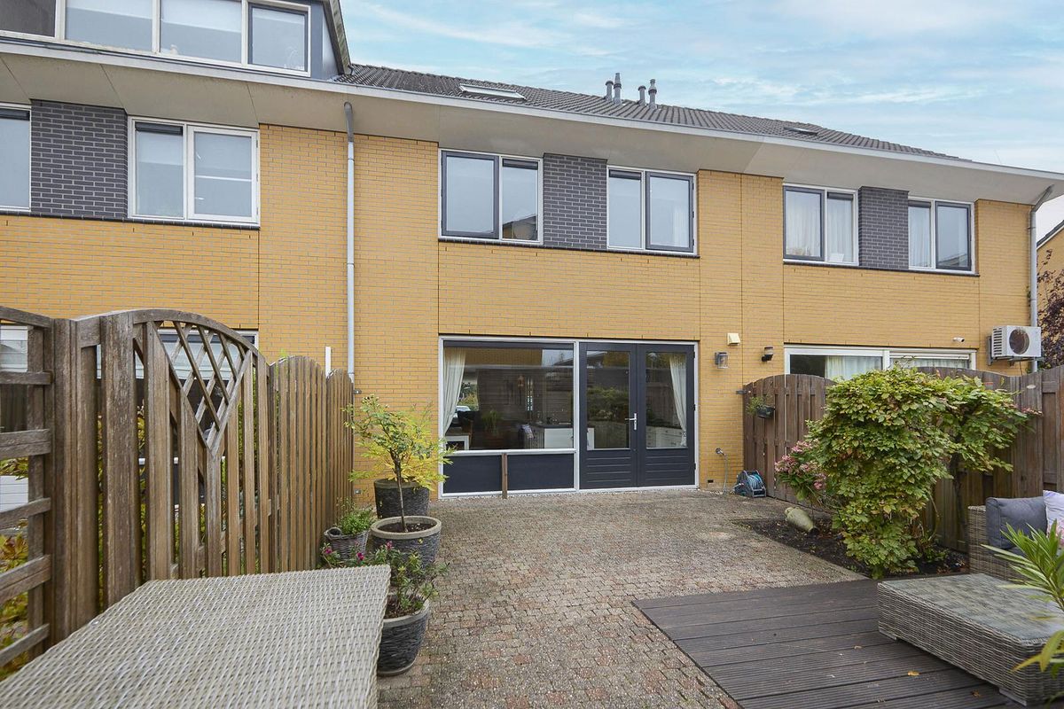 Vanuit de keuken is er toegang tot de zonnige tuin met houten schuur — ideaal voor fietsen, tuinspullen of als hobbyruimte en er is een achterom.