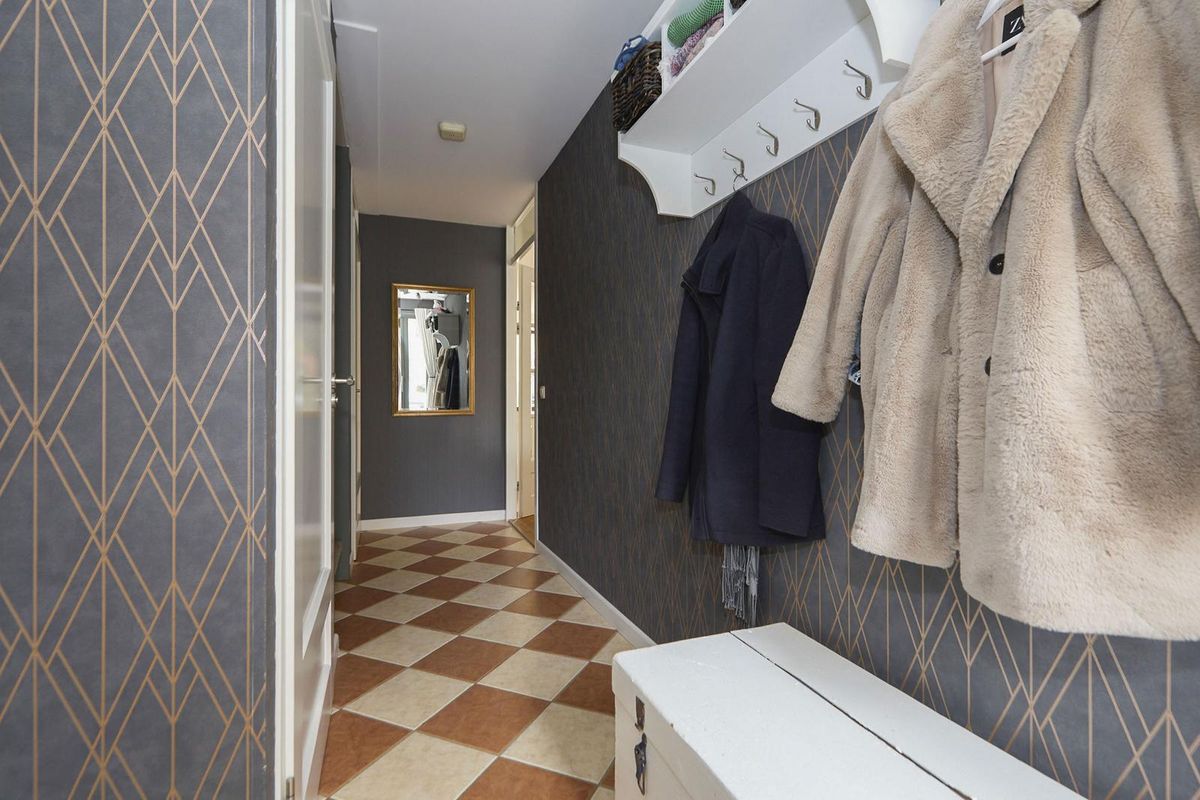 Via de verzorgde entree met hal, meterkast (met 9 groepen, 3 aardlekschakelaars, 3 fasen en slimme meters) een trapkast en een separaat toilet met wandcloset en fontein, bereikt u de gezellige woonkamer met trapkast en landelijke afwerking.
