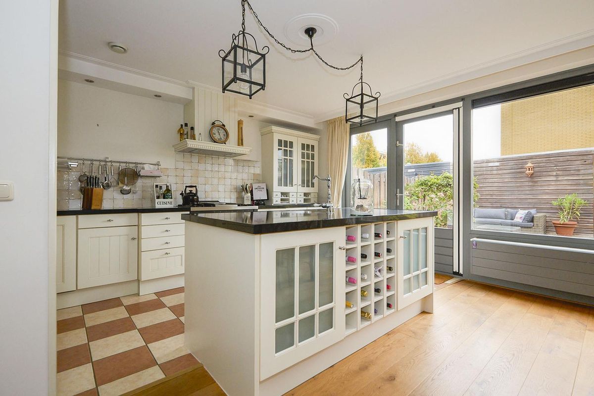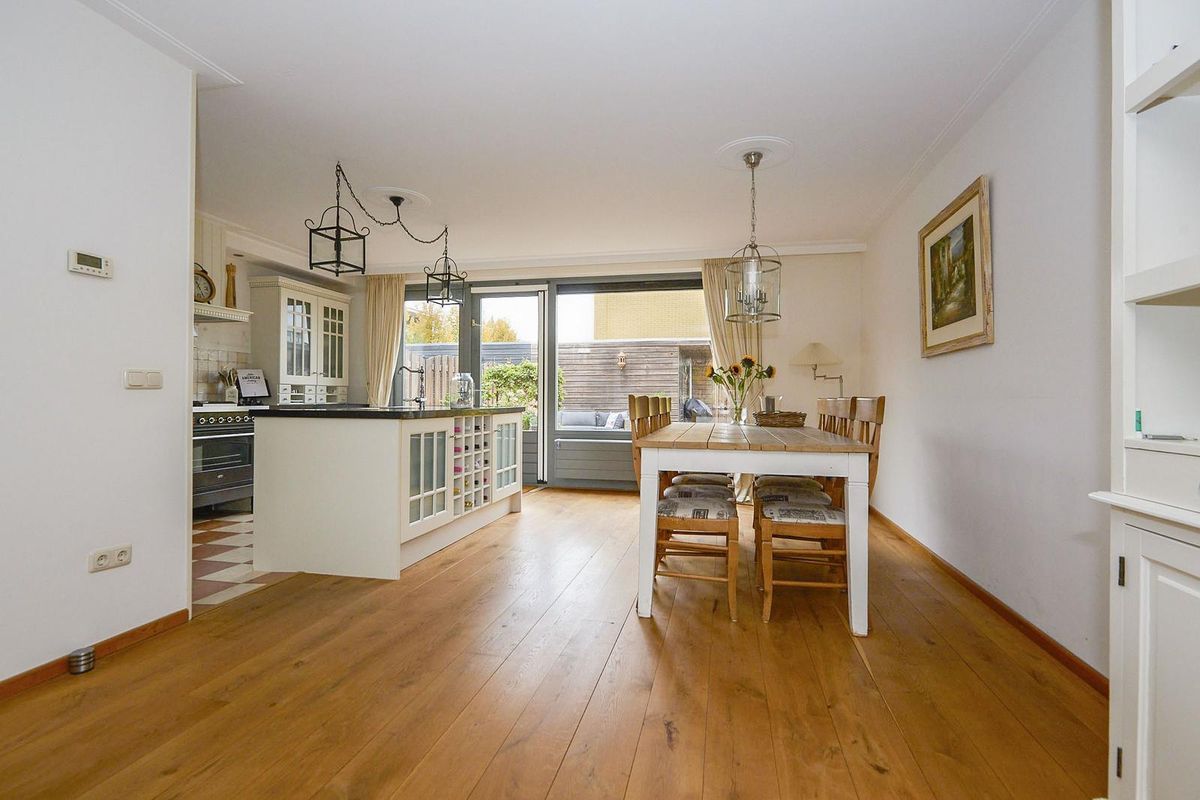 De woonkeuken is een ware blikvanger: voorzien van een groot kookeiland, 5-pits fornuis met afzuigkap, vaatwasser, grote koelkast en aparte vriezer. Hier kookt u met plezier, terwijl u in contact blijft met uw gezinsleden of gasten. De massief eiken vloer (Osmo-geolied) geeft de ruimte een warme, natuurlijke uitstraling.