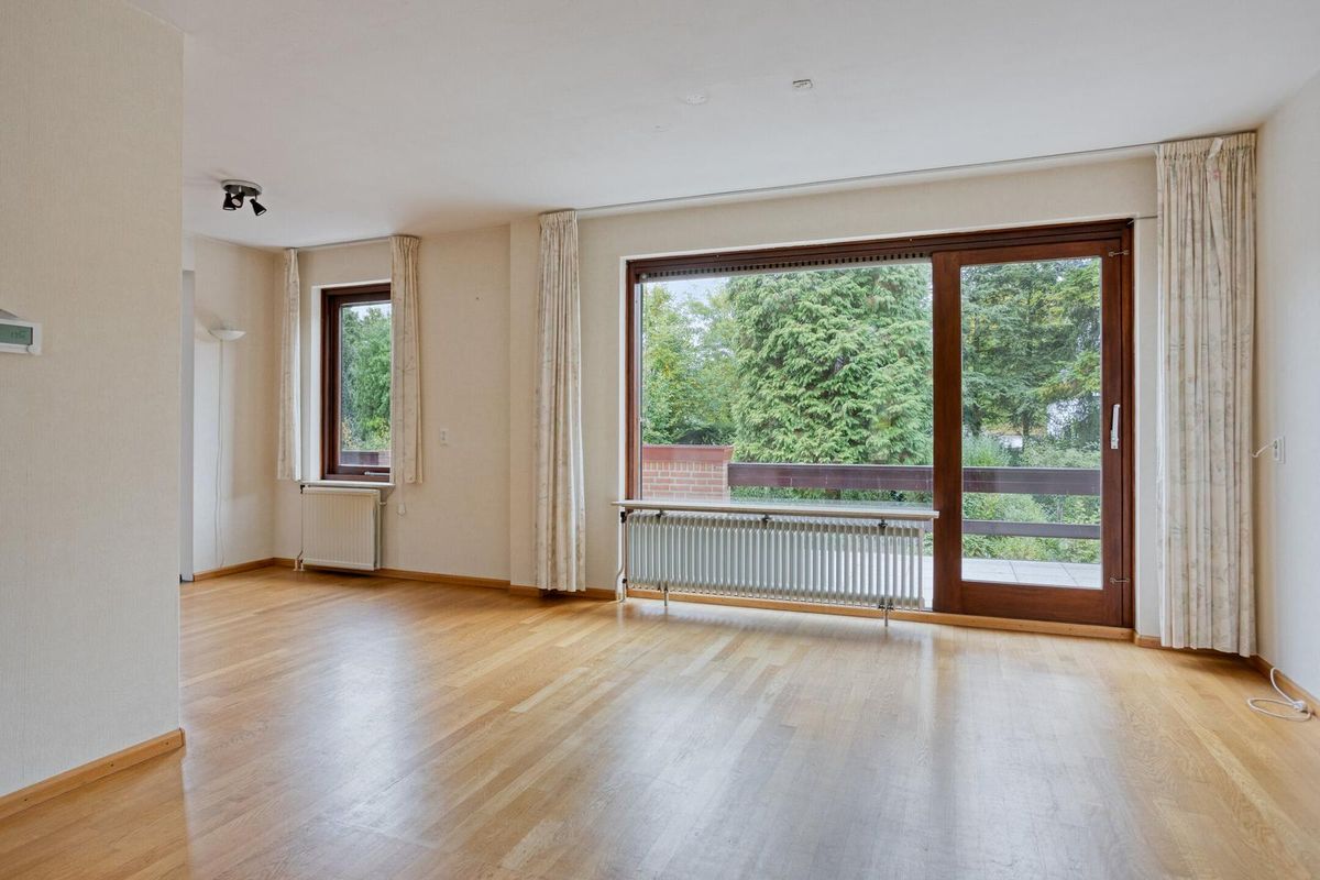 De fijne doorzonwoonkamer (38m²) heeft raampartijen aan de voorzijde en een schuifdeur,