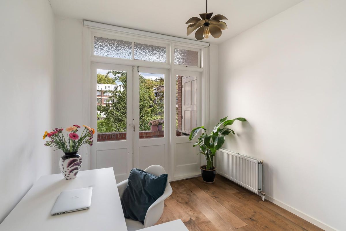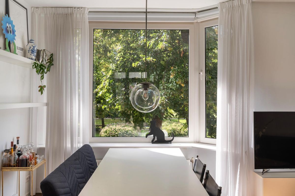 Entree met kleine trap, meterkast, berging en toegang tot alle vertrekken op deze verdieping. De ruime woonkamer is gelegen aan de voorzijde van de woning. Door de grote raampartijen aan de voorzijde van de woning treedt er veel natuurlijk licht de woning binnen, wat zorgt voor een fijne, lichte sfeer. De raampartijen bieden een schitterend uitzicht over het Vroesenpark. De woonkamer biedt voldoende ruimte voor een riante zithoek. De stijlvolle keuken is het hart van deze open ruimte, waar koken en gezelligheid perfect samenkomen. Het is de ideale plek om lekker in contact te blijven met je gezelschap, terwijl je geniet van de open, gezellige sfeer. De keuken beschikt over diverse inbouwapparatuur zoals een 6-pits gasfornuis met afzuigkap, oven, vaatwasser en een Quooker. Aan de achterzijde bevindt zich een open ruimte die multifunctioneel is in te richten als eethoek, kantoor of 2e slaapkamer. Via openslaande deuren bereik je het balkon op het oosten, waar je heerlijk van de ochtendzon kunt genieten met een kop koffie! De master bedroom met inloopkast is gelegen aan de achterzijde van de woning. Deze kamer is erg ruim, licht en heeft ook toegang tot het balkon. De volledig betegelde badkamer beschikt over een inloopdouche, toilet en een wastafel.