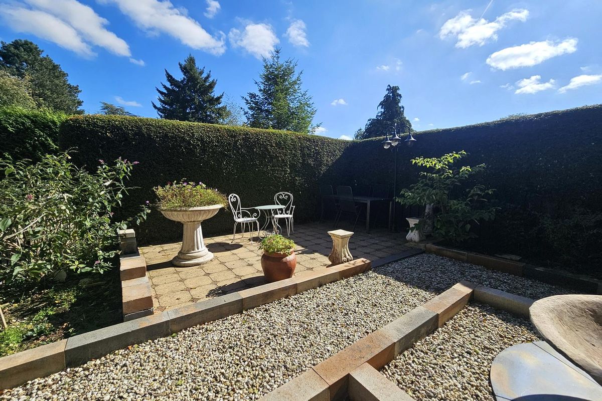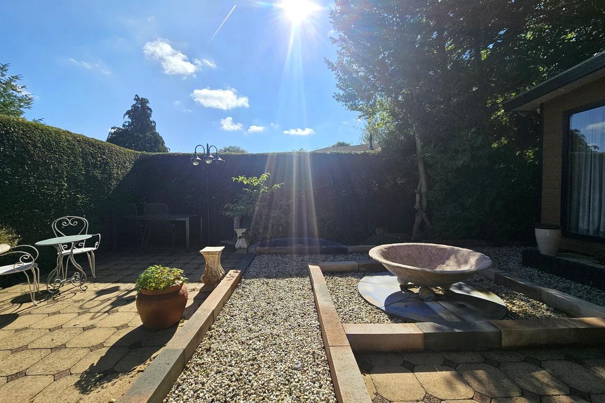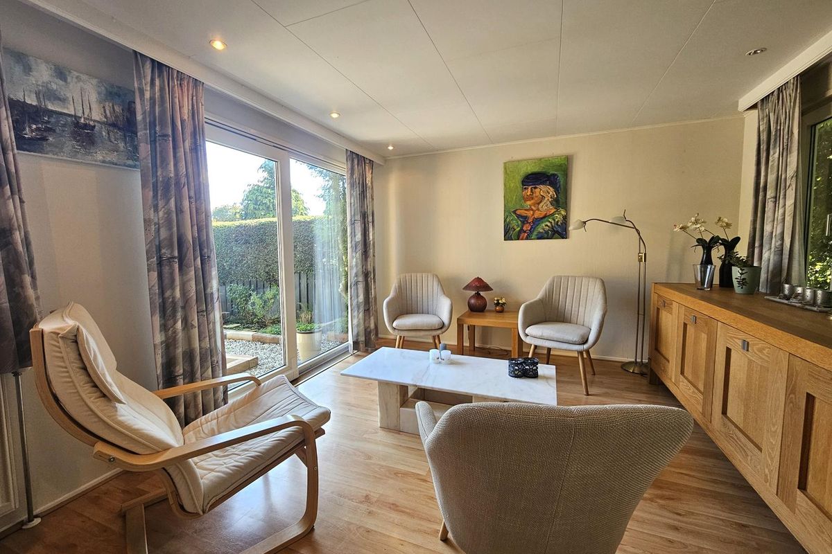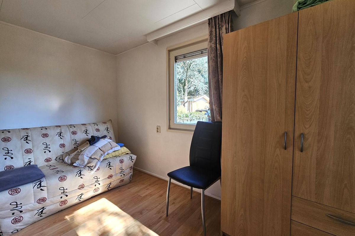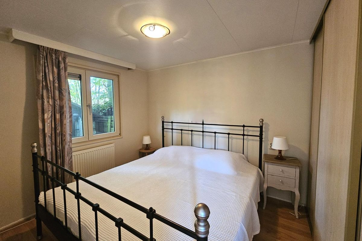 De tuin is een waar plaatje: goed onderhouden, smaakvol aangelegd en voorzien van diverse gezellige plekjes waar u zowel in de zon als in de schaduw kunt genieten. Achter de woning strekt zich een charmante, natuurlijke hoek uit aan de Hierdense Beek, omringd door volwassen bomen, waar u in alle rust kunt ontspannen en het prachtige uitzicht kunt bewonderen. Het geheel ademt een serene en uitnodigende sfeer, perfect om te genieten van buitenleven, lezen, of een kop koffie in de ochtendzon. Daarnaast beschikt het chalet over een eigen oprit, die parkeergelegenheid biedt, en een extra houten berging, ideaal voor het opbergen van tuinmaterialen, fietsen of andere spullen, waardoor functionaliteit en comfort hand in hand gaan.