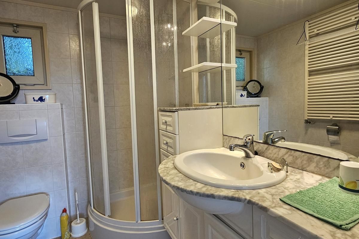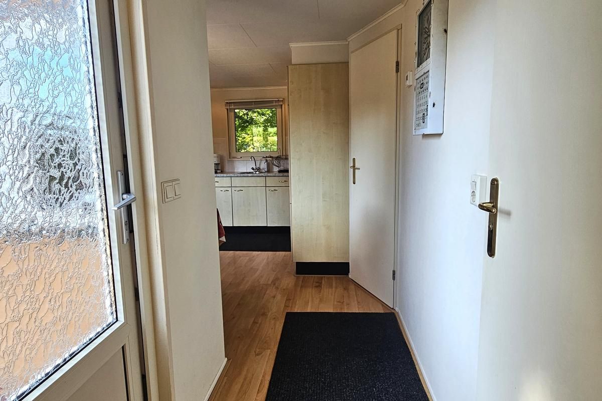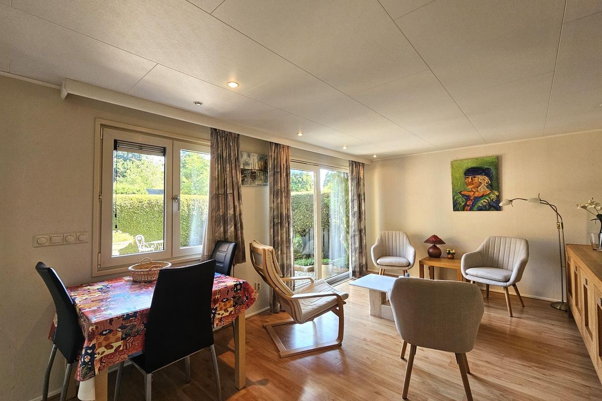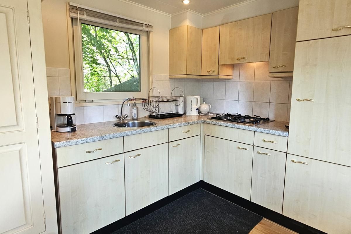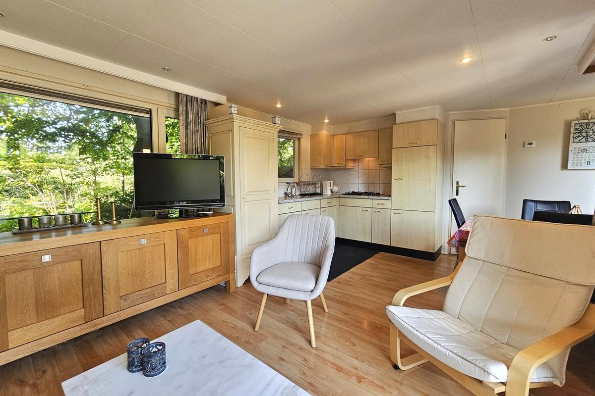 Indeling: Hal met entree naar de lichte woonkamer, voorzien van grote raampartijen die zorgen voor veel natuurlijk licht en een schuifpui naar de tuin. Er is een gezellige zithoek met voldoende ruimte om heerlijk te ontspannen, en een eetgedeelte waar u kunt genieten met uitzicht op de natuur. De open hoekkeuken is voorzien van een gaskookplaat, koel-vriescombinatie, oven, spoelbak met kraan en ruime kastruimte. Vanuit de keuken en woonkamer heeft u een prachtig uitzicht op de Hierdense Beek. Vanuit de woonkamer vindt u twee slaapkamers, waarvan de ruime ouderslaapkamer beschikt over een vaste kast. De badkamer is voorzien van douchecabine, royaal wastafelmeubel, toilet. Tevens bevindt zich in de badkamer een wasmachine aansluiting voor extra gemak.