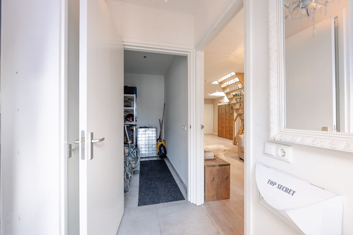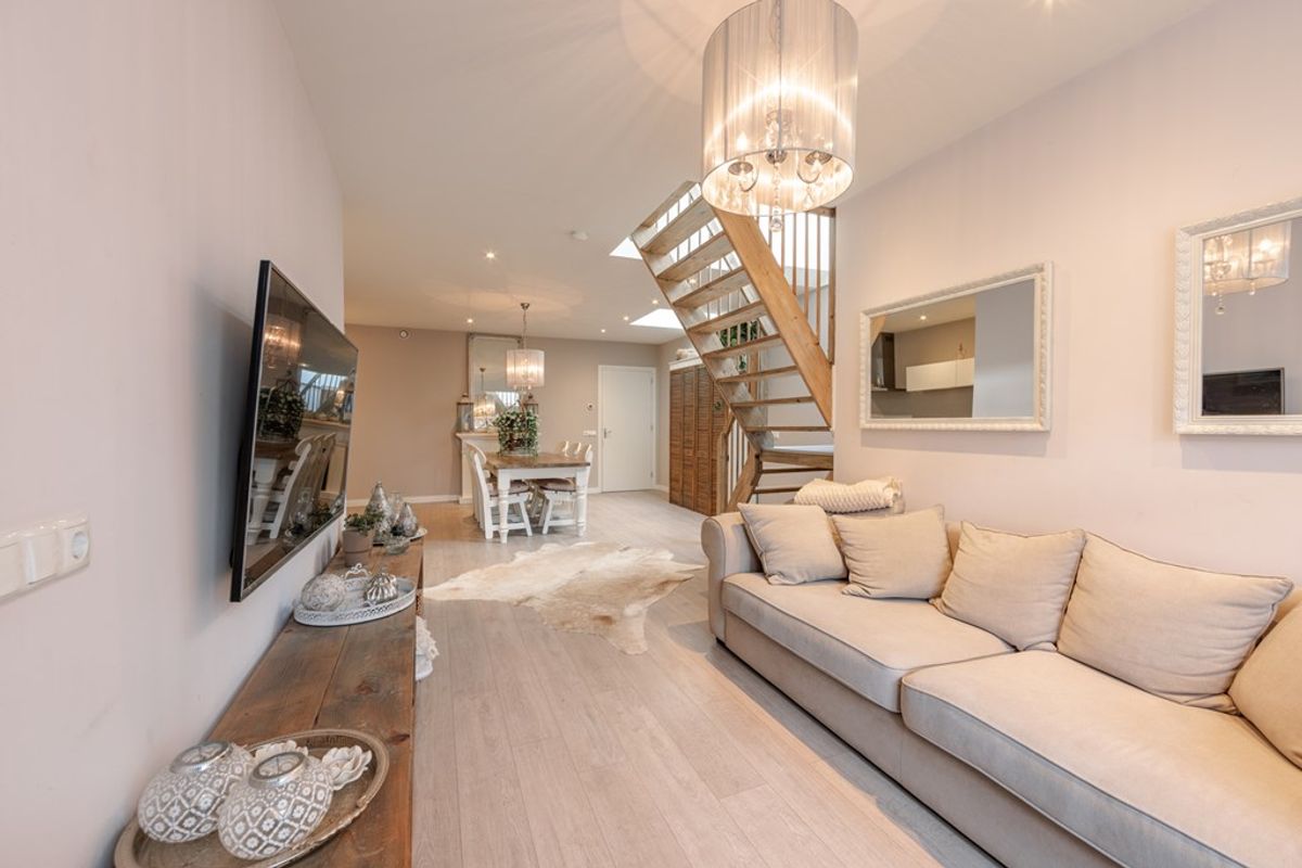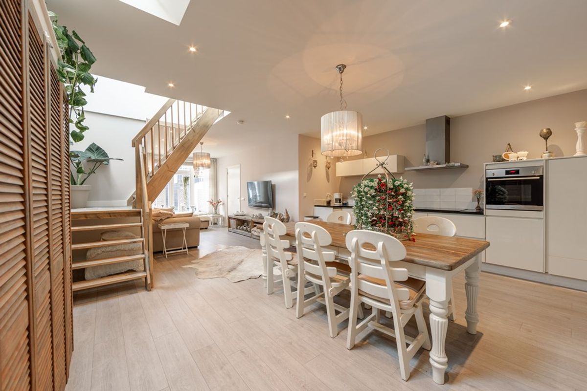 Via de hal, met een inpandige fietsenberging, kom je in de gezellige woonkeuken en het zitgedeelte. De gehele begane grond is voorzien van vloerverwarming.