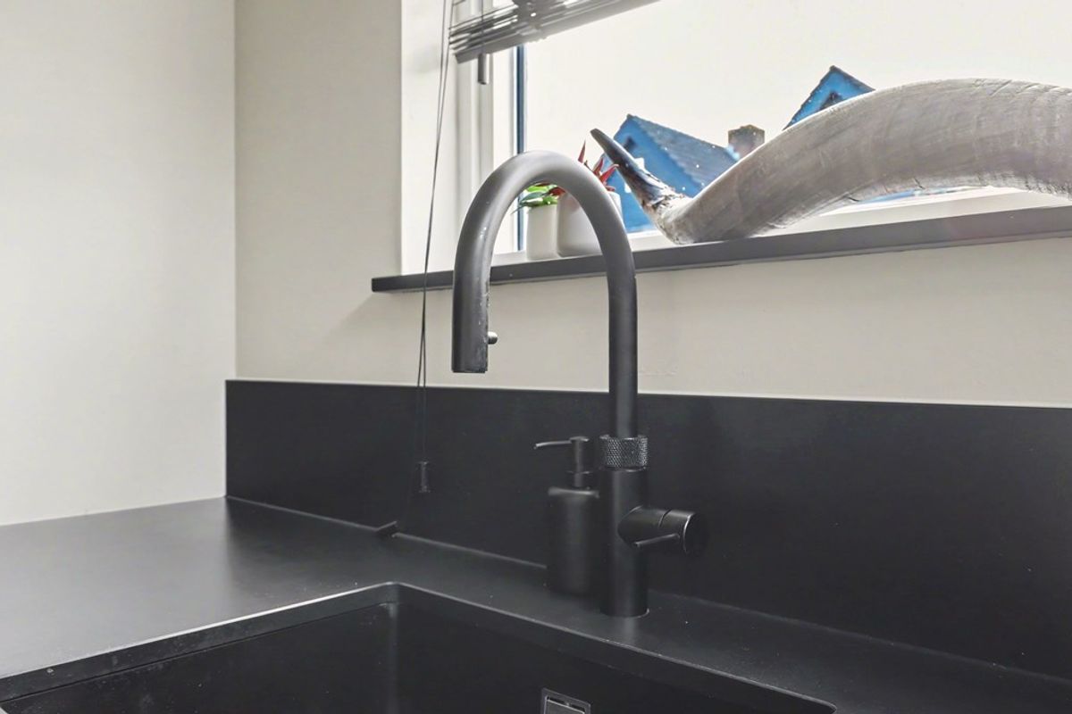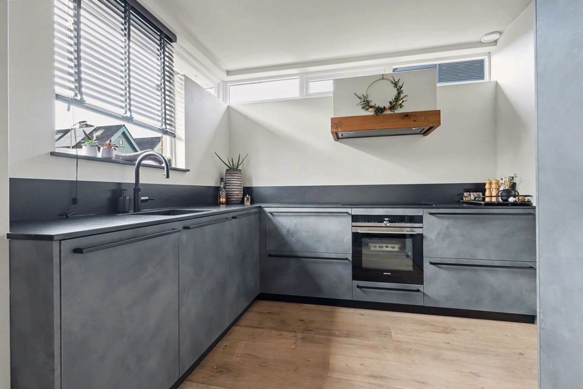 - Open moderne luxe keuken (2021), voorzien van diverse inbouwapparatuur, met o.a. inductie kookplaat, oven, koelkast, vaatwasser, Quooker en afzuigkap.