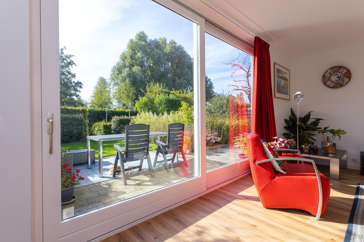 Via de zij-entree komt u binnen in de hal, met toegang tot een modern toilet, meterkast, trapopgang en toegang tot de garage. De garage is verdeeld in een gedeelte berging een bijkeuken met aansluitingen voor de wasmachine en de droger. Aan de voorzijde de woonkeuken met keukenblok in U-vormige opstelling met vaatwasser, koelkast, vriezer, oven, inductie kookplaat, afzuigkap en een Quooker, aansluitend een mooie ruimte voor een grote eettafel, ruime en lichte woonkamer met grote schuifpui naar de achtertuin. De achtertuin is gelegen op zonnige zuid-westen zeer graai aangelegd met diverse terrassen en steiger aan het water met uitzicht over het park. De begane grond is voorzien van een PVC vloer met een vloerverwarming.